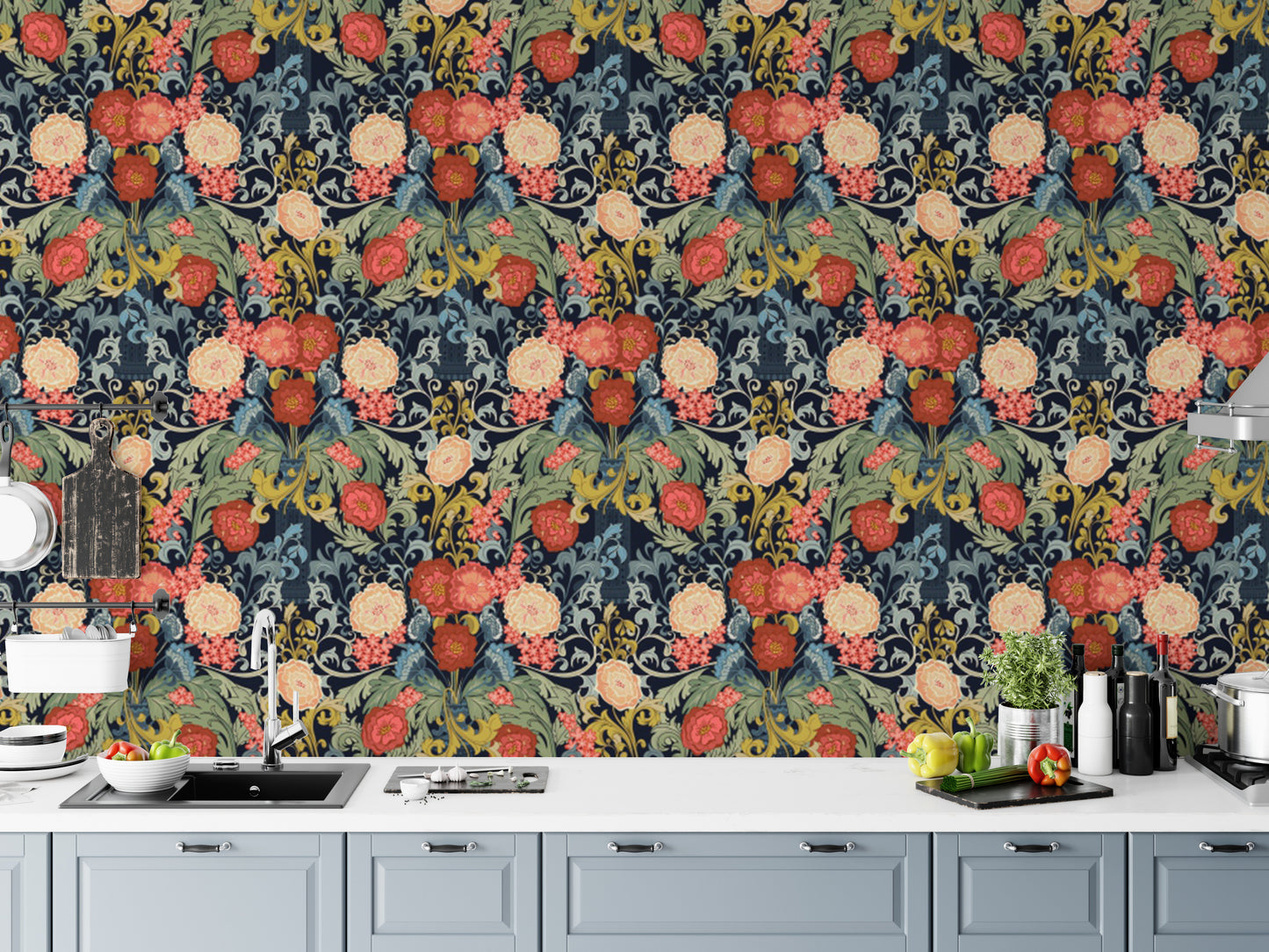 Adorn your walls with the timeless charm of Baroque Rose Mosaic Wallpaper. This exquisite pattern showcases a symphony of florals, where lush roses and tender blooms interlace against a rich, dark backdrop. Each detail is a nod to classic artistry, making it an ideal choice for those seeking to envelop their room in a canopy of botanical beauty. The depth of color and intricate detail ensure that this flower wallpaper acts as a stunning focal point in any setting. Whether creating a feature wall or enveloping an entire room, this wallpaper invites a sense of historical romance and artful craftsmanship into your home. It's not just a backdrop it's a journey to an era of baroque grandeur, wrapped in the romance of a garden in full bloom