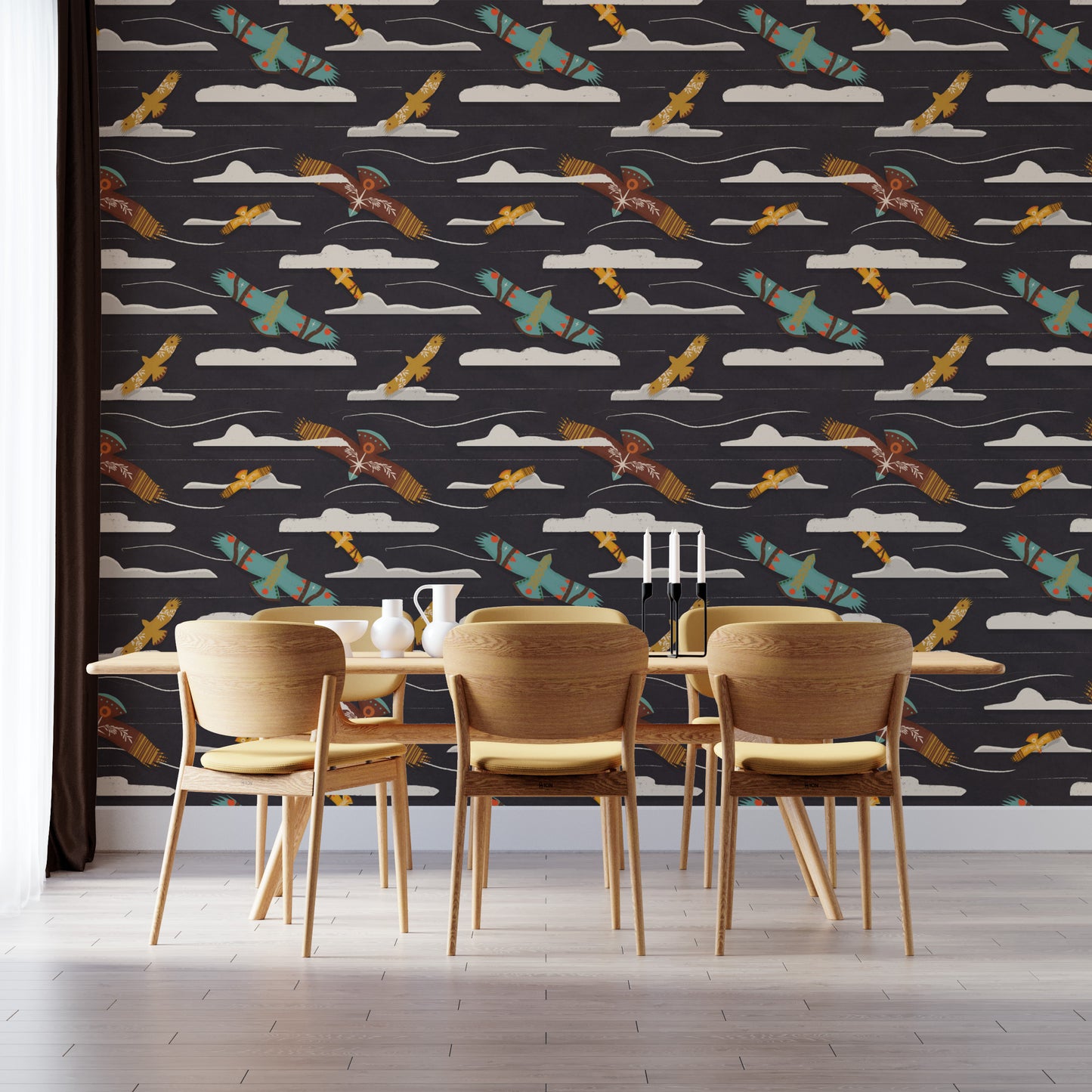 Create a warm and inviting atmosphere in your home with the Hallway: Birds of Prey Eagle Flying Charcoal Wallpaper. This beautiful wallpaper wall mural features design and is made from eco-friendly materials. With Birds of Prey Eagle Flying Charcoal Wallpaper for walls, you can enjoy aesthetic appeal in any room of your home.