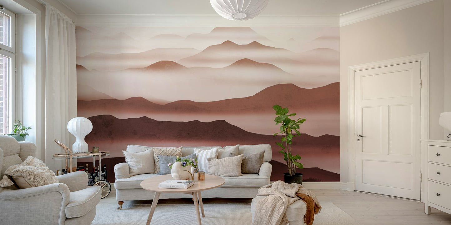 Escape to the tranquil embrace of 'Burgundy Mountain Haze,' a wallpaper that captures the essence of a misty mountain range. The deep burgundy tones create a sense of warmth and mystery, while the soft fog adds an element of dreamlike beauty. The layered peaks suggest depth and vastness, inviting the viewer to lose themselves in the serene atmosphere. Perfect for a space seeking sophistication and a touch of nature's calming influence. The image is rich in detail yet maintains a minimalist aesthetic, creating a harmonious balance for any modern interior.