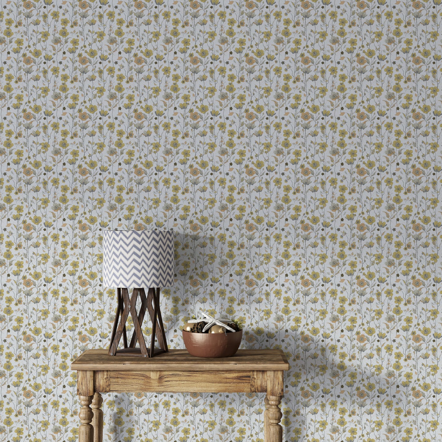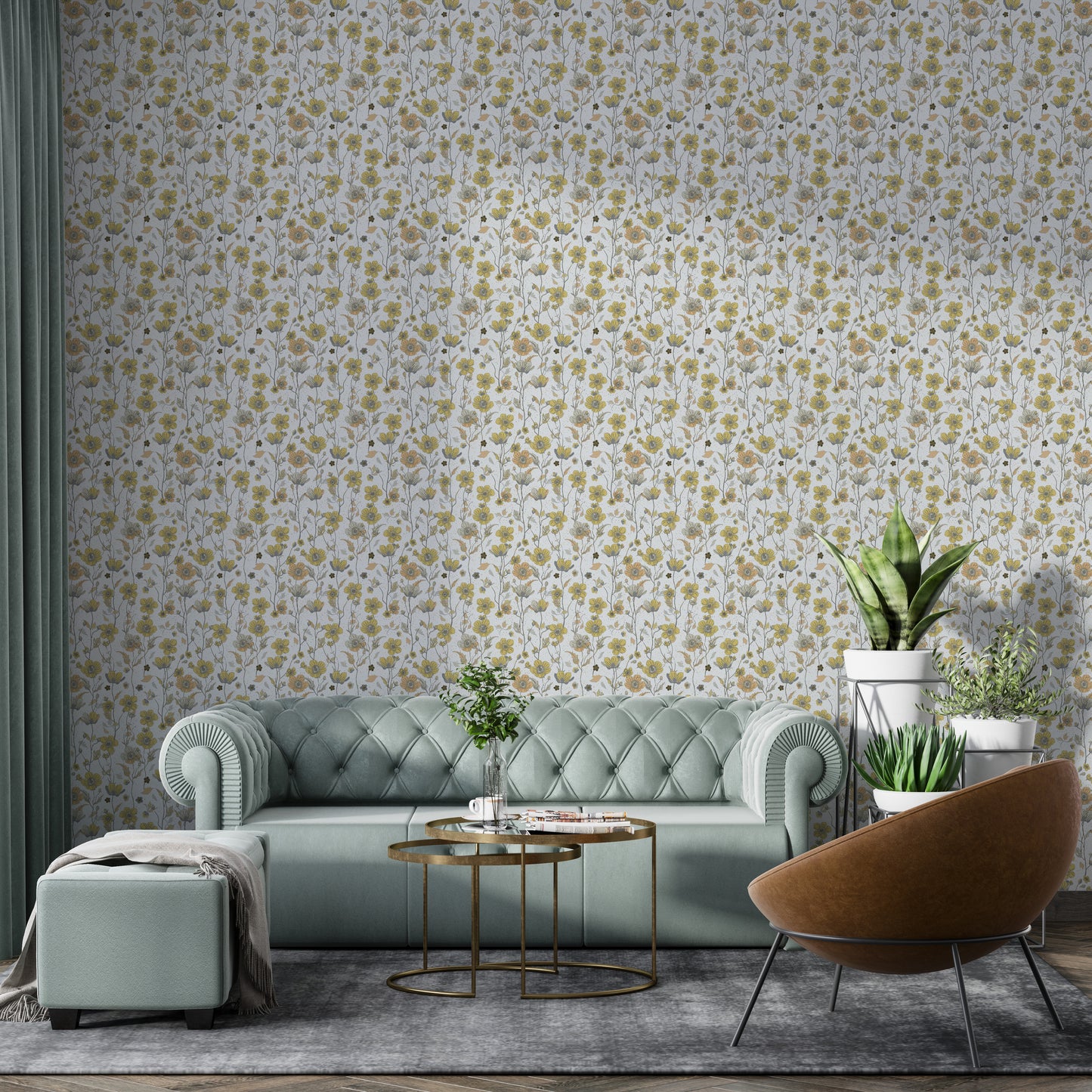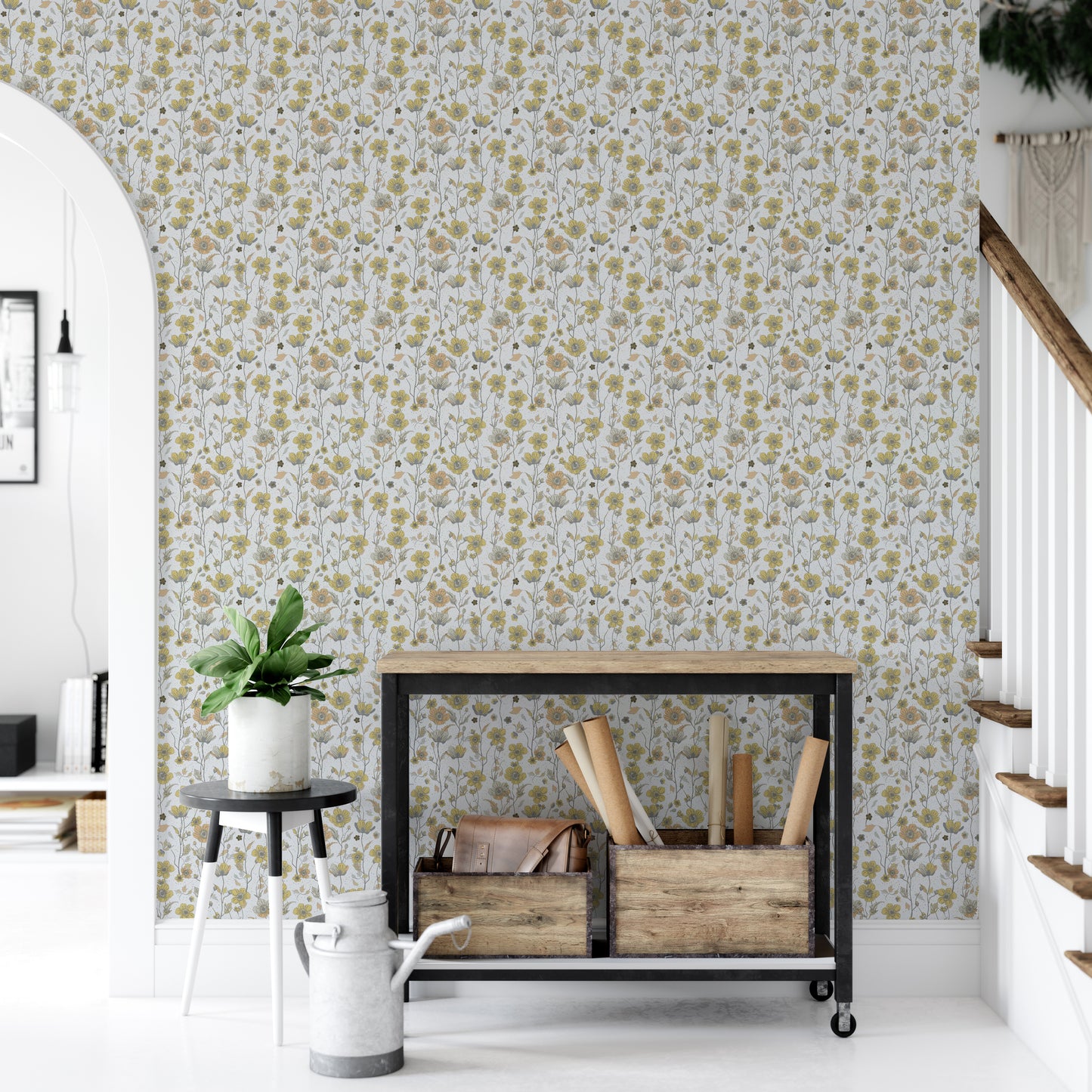 Step into a dreamy meadow with the Buttercups Garden Golden and Gray Wallpaper. Featuring delicate buttercup flowers blooming in soft golds, sage greens, and cool grays, this design adds a serene botanical charm to bedrooms, living areas, or entryways. The hand-drawn floral details evoke a vintage garden aesthetic, while the soft palette blends effortlessly with both modern and classic interiors. Made with peel-and-stick ease, it’s perfect for DIY decorators.