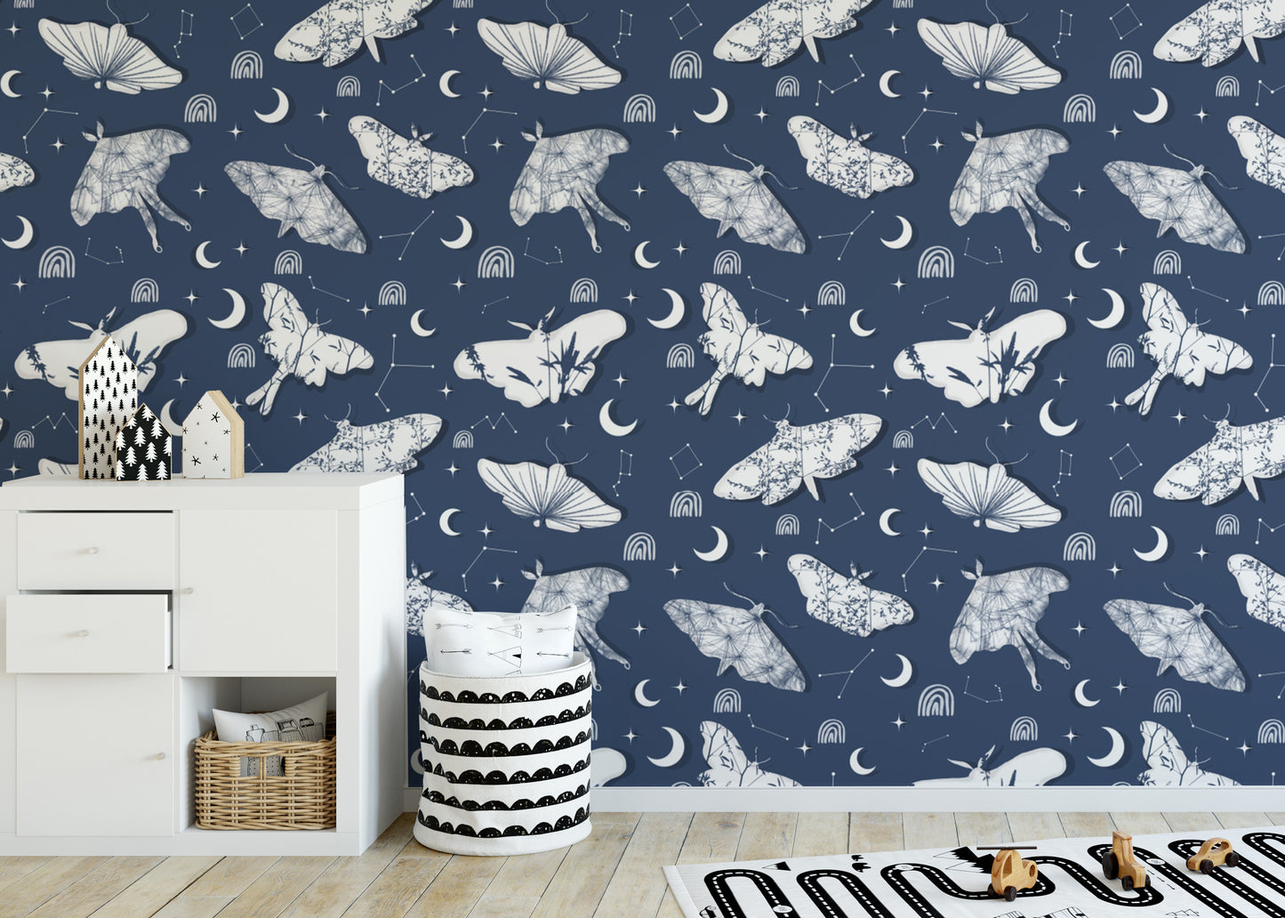 Make a bold statement in your space with the Kids Room: Dreamy Shibori Floral Butterflies and Stars Wallpaper. Our wall mural features a pattern that is both modern and timeless. Printed on high-quality eco-friendly materials, Dreamy Shibori Floral Butterflies and Stars Wallpaper is the perfect choice for any kids room.