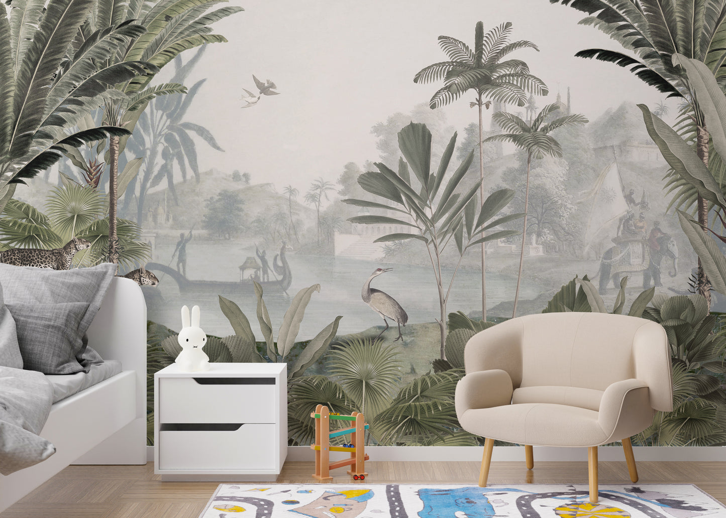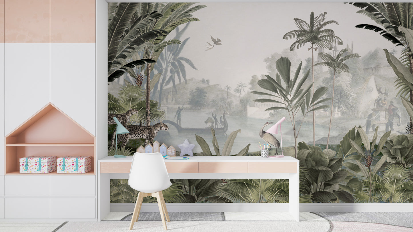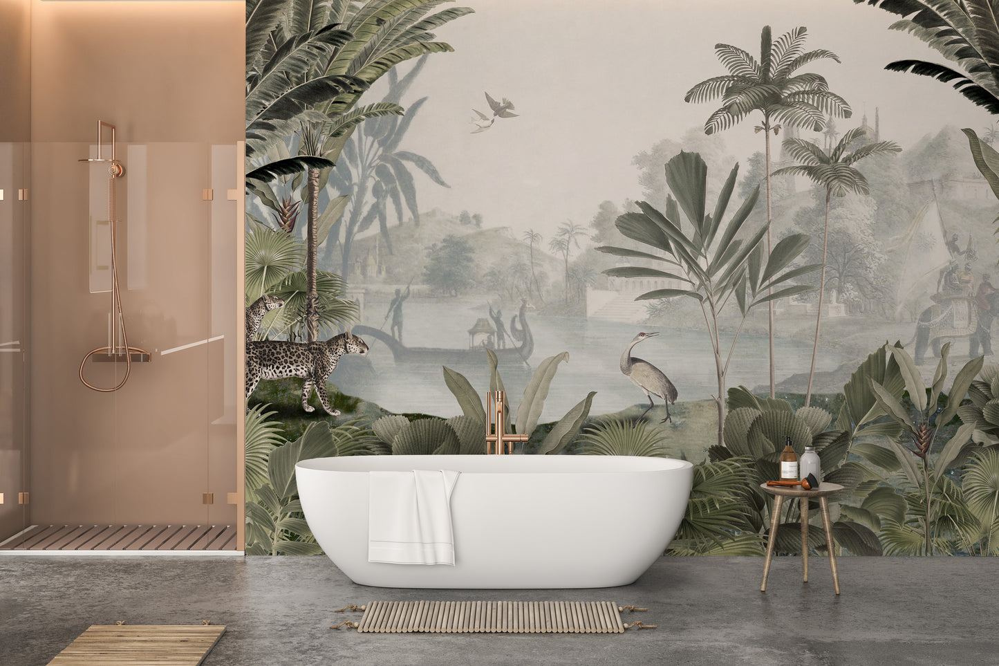 Immerse yourself in the depths of the jungle with our Leopard Landscape with Lush Green Forest Wallpaper. This mural invites the raw beauty and majesty of the leopard into your space, set against a backdrop of dense, vibrant foliage. The vivid greens and naturalistic scene transport you to a world where the wild reigns supreme, offering a stunning visual escape. Ideal for creating a dramatic and invigorating atmosphere, this landscape wallpaper is a celebration of nature's untamed spirit, perfect for anyone looking to add a bold and adventurous touch to their decor.