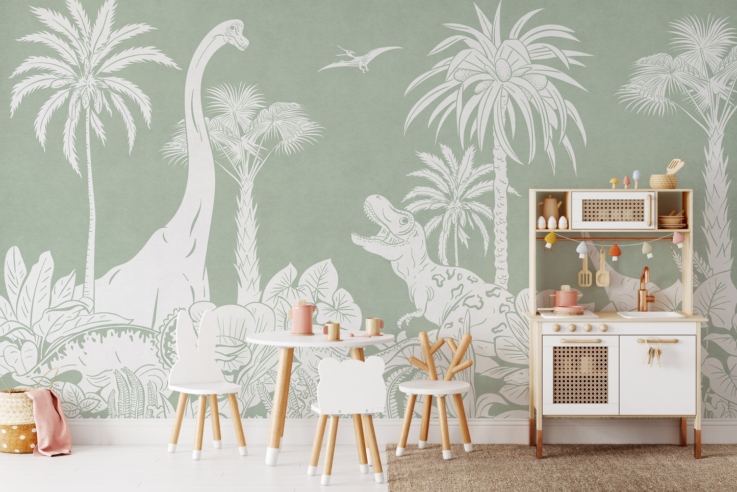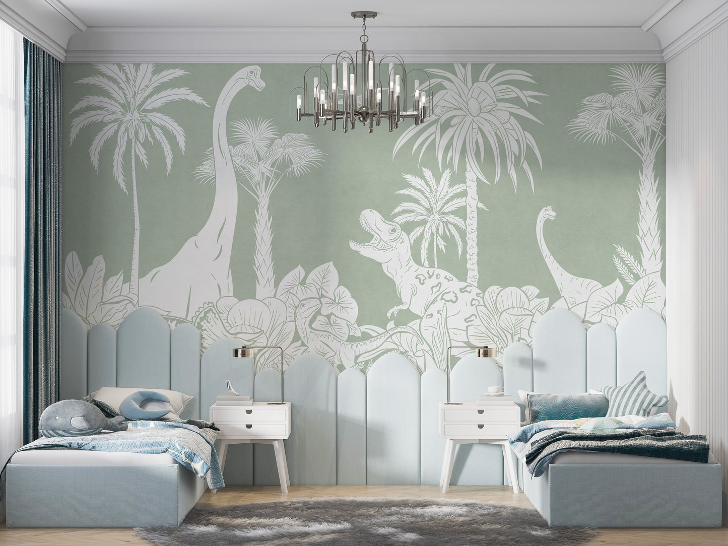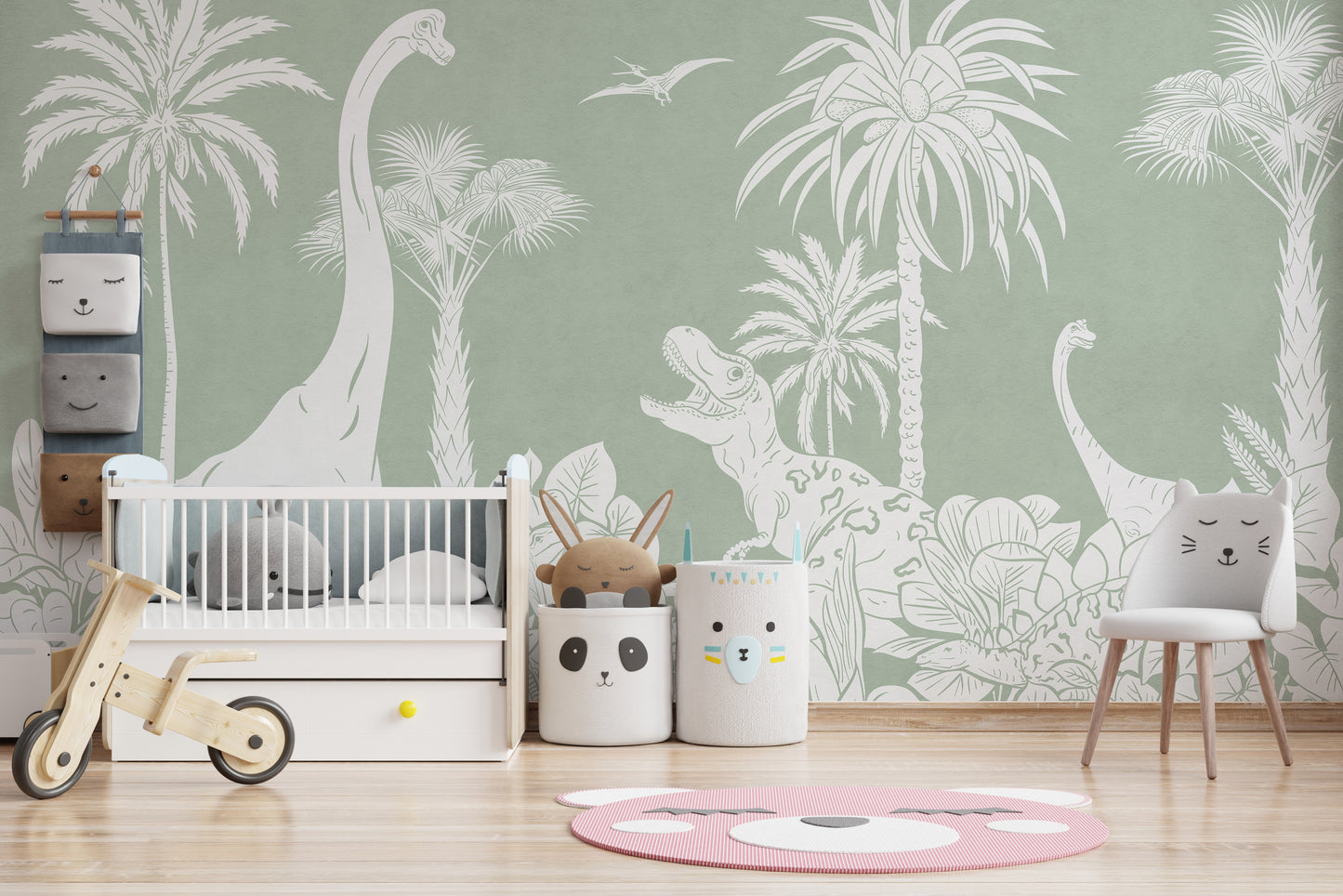The monochrome dino green wall mural is the ideal choice for any child's room, bringing a prehistoric adventure to life. With detailed dinosaur illustrations and a soothing green background, this wallpaper ignites imagination and excitement. Perfect for young dinosaur enthusiasts, this kids room wallpaper is designed to inspire creativity and exploration. Easy to apply and durable, the monochrome dino green wall mural is a great investment for parents looking to create a fun and engaging environment. Secure yours today and watch your child's room come alive with the wonders of the dinosaur world.
