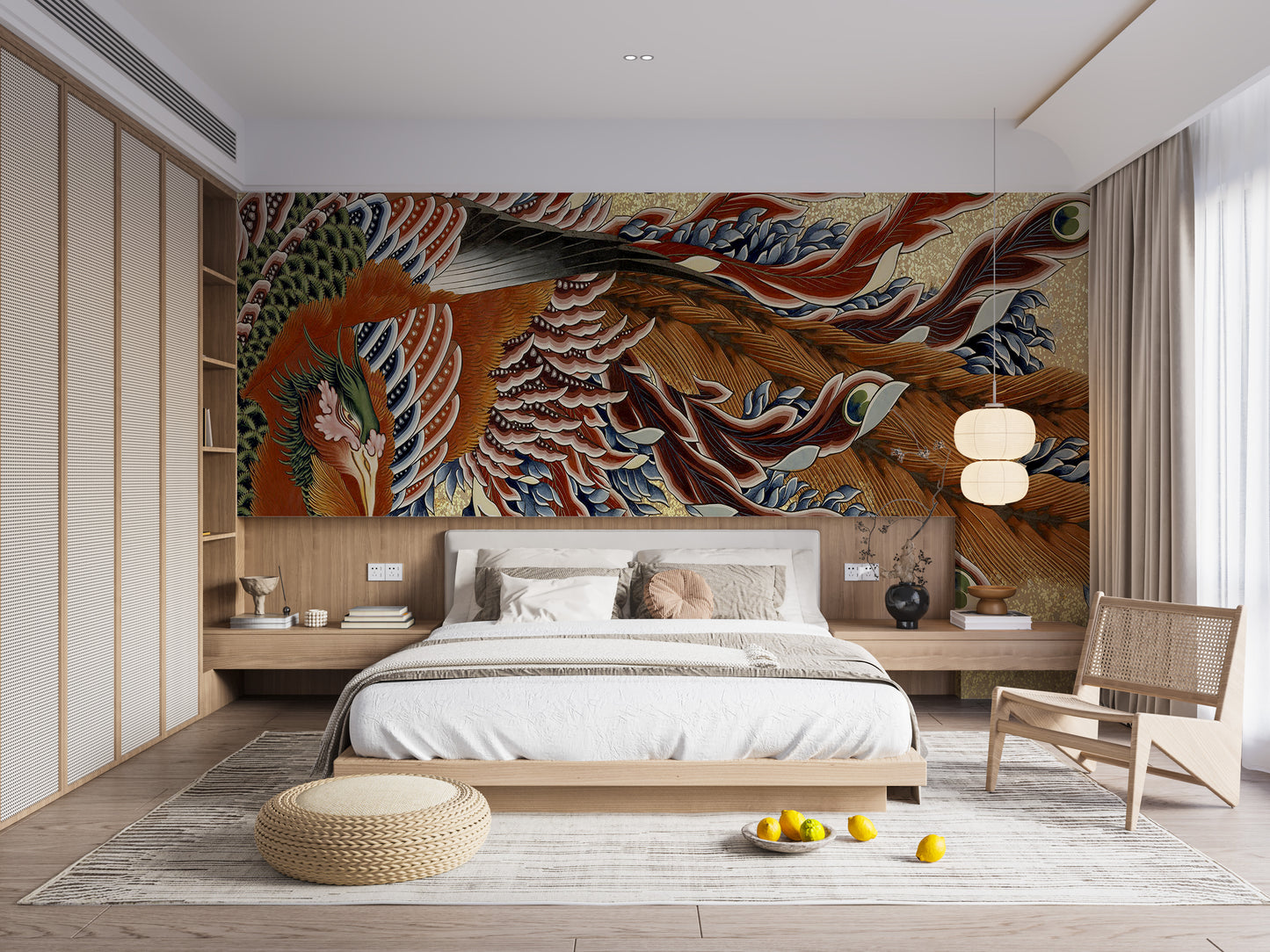 Panoramic Painted Peacock Wallpaper For Walls - Giffywalls