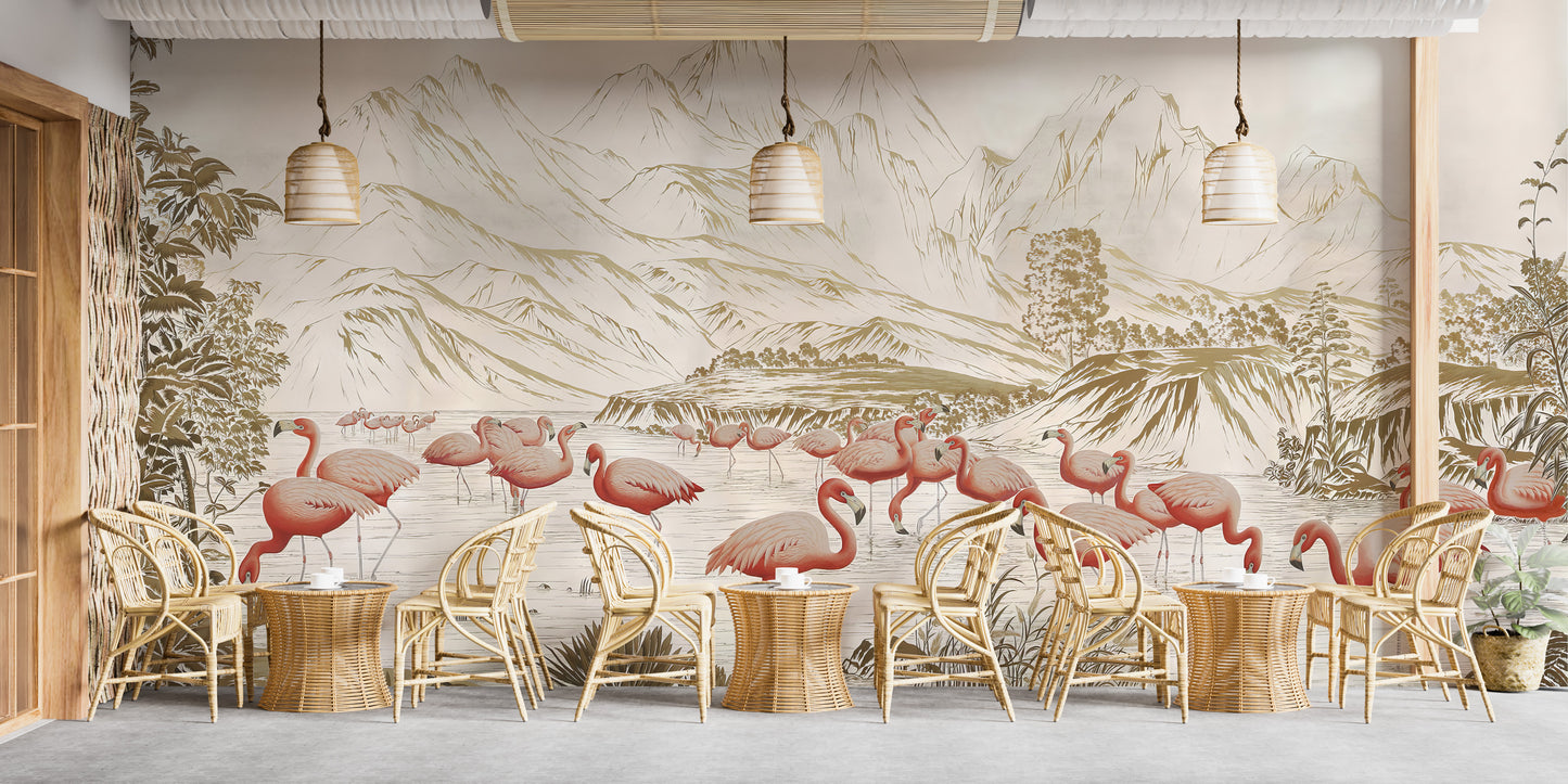 Use this pastel pink color wallpaper to welcome the soft glamour of pastel shades through whose doors the spirit of a flock of flamingoes playfully welcomes you to your room that you both will absolutely adore.