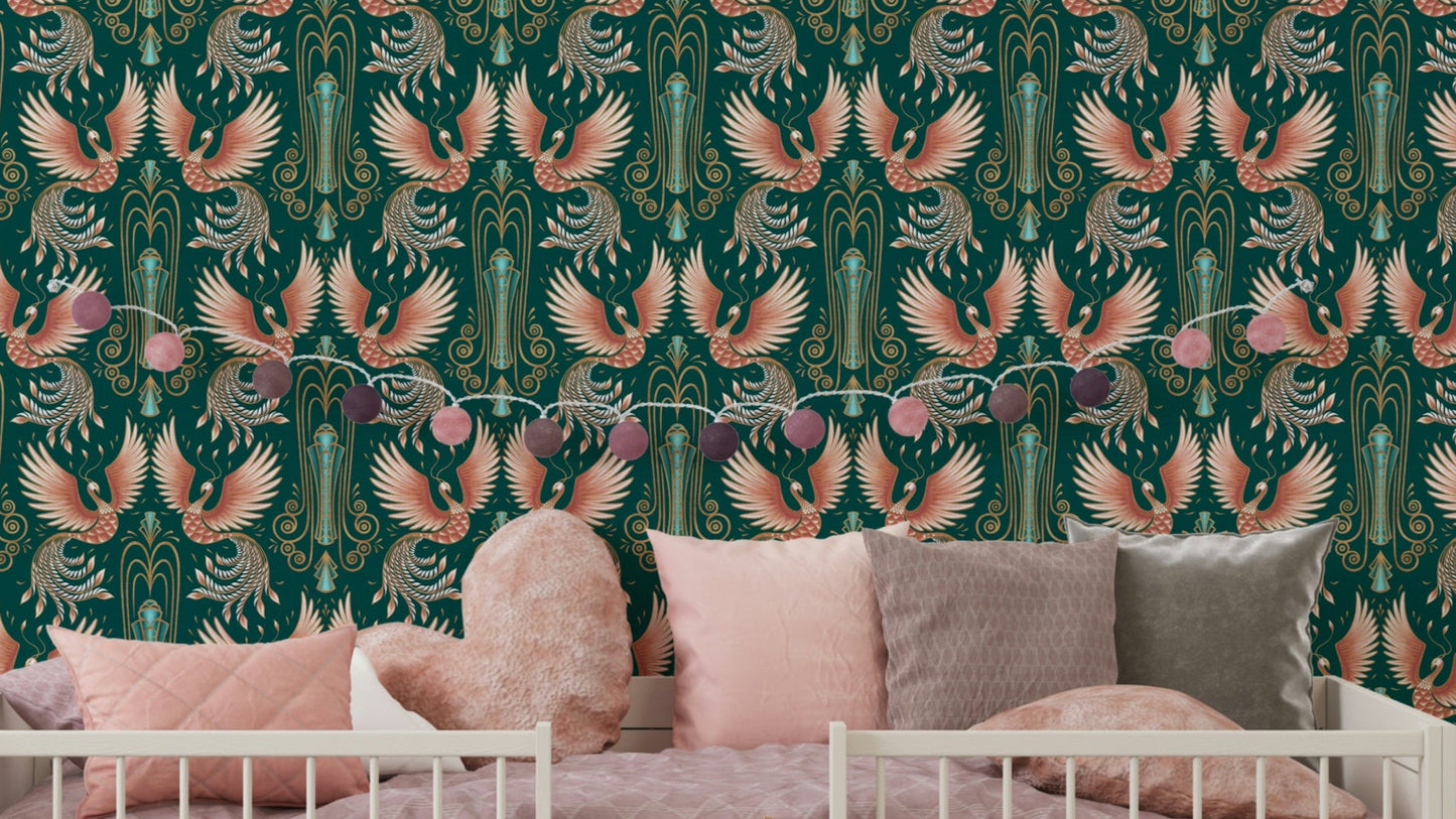 Embrace transformation and renewal with a stunning design featuring the rebirth of a phoenix. This captivating wallpaper brings vibrant colors and intricate patterns to your walls, creating a serene yet striking environment. Perfect for adding a touch of mythology and inspiration to your home, it's ideal for creating a focal point in any room. Let your space resonate with the powerful symbolism of rebirth and beauty, making every moment at home feel truly special.