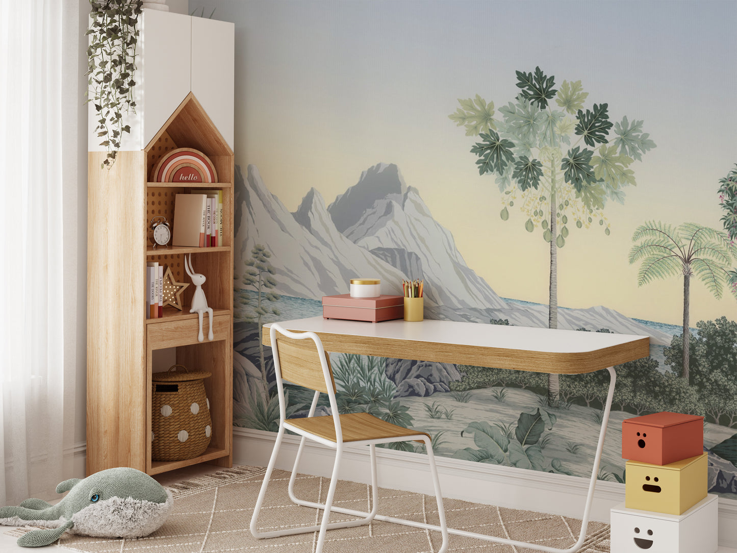 Turn your room into a tranquil vacation with the tropical paradise botanical wall mural. This tropical scenery wallpaper can insert rich greenery, exotic trees, and an awe-inspiring coastal scene into your house. Inspired by traditional botanical illustrations, it brings a sense of timelessness to any space. The soft, muted colours and acceptable specifications evoke a restful environment suitable for bedrooms, living rooms, or offices. This botanical wallpaper lends its nature-inspired beauty to interiors and delivers an integrated combination of tranquillity and sophistication. Elevate your décor effortlessly with this stunning mural, turning your walls into a paradise retreat. Easy to install and durable!
