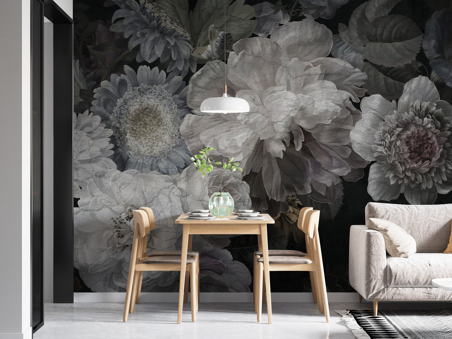 Experience the magic of nightfall right in the comfort of your home with our velvet night bloom mural wallpaper. This eye-catching bedroom wallpaper brings the mysterious allure of twilight into your personal space, featuring a captivating display of nocturnal blossoms. With its sophisticated color palette and striking flower wallpaper design, it creates a mood that is both dramatic and intimate, perfect for rest and relaxation.