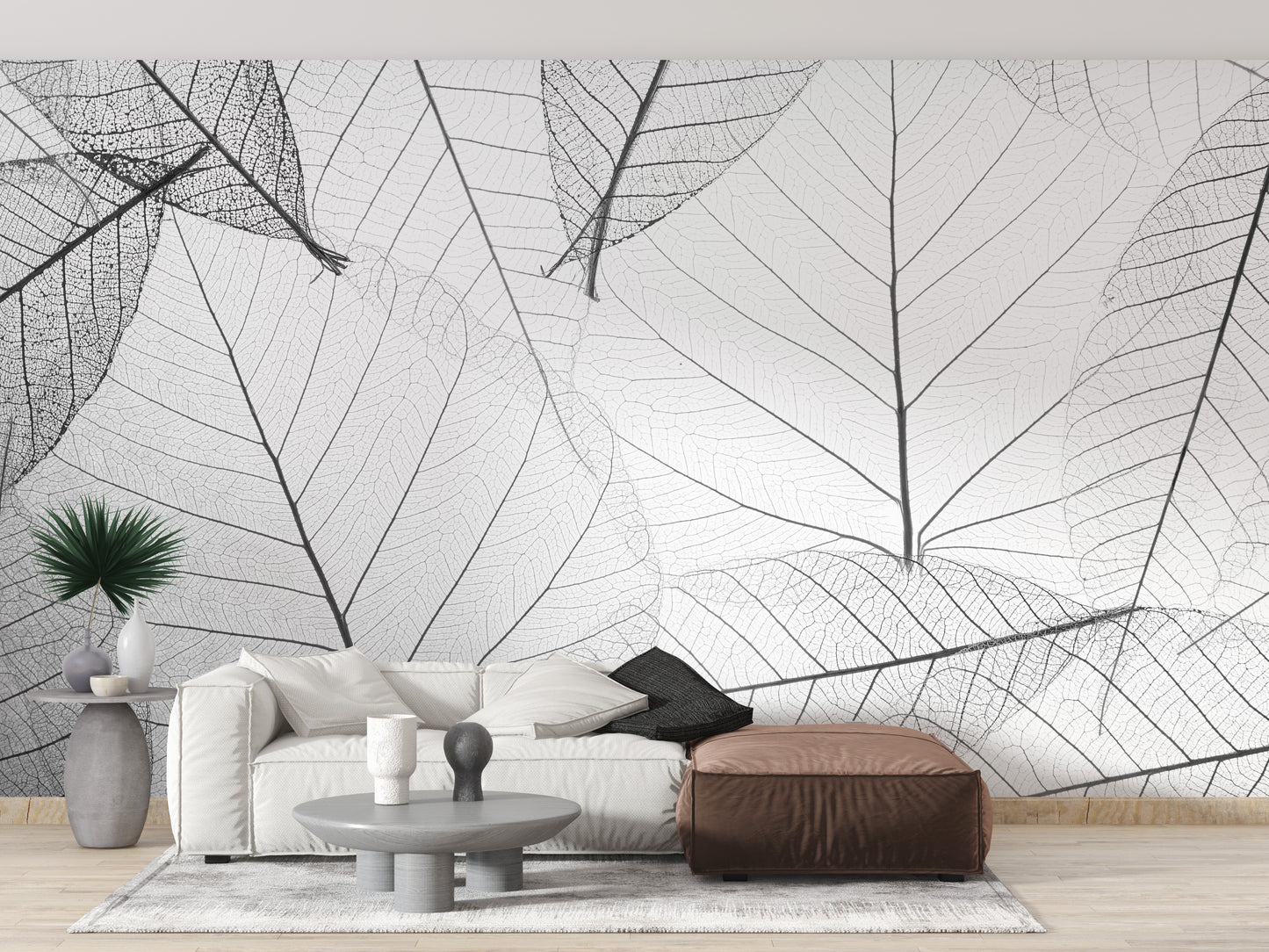 Black & White Large Veins Leaves Wallpaper Mural - Giffywalls