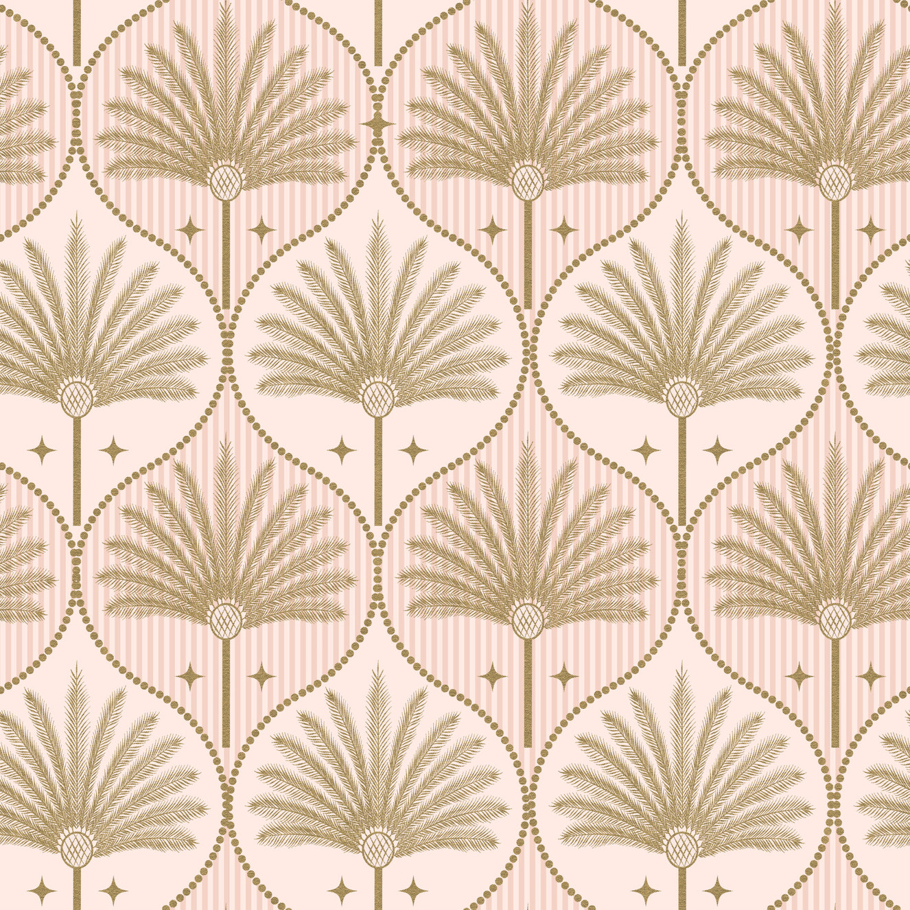 Art Deco Gold Tropical Palm Tree with Pink Stripes