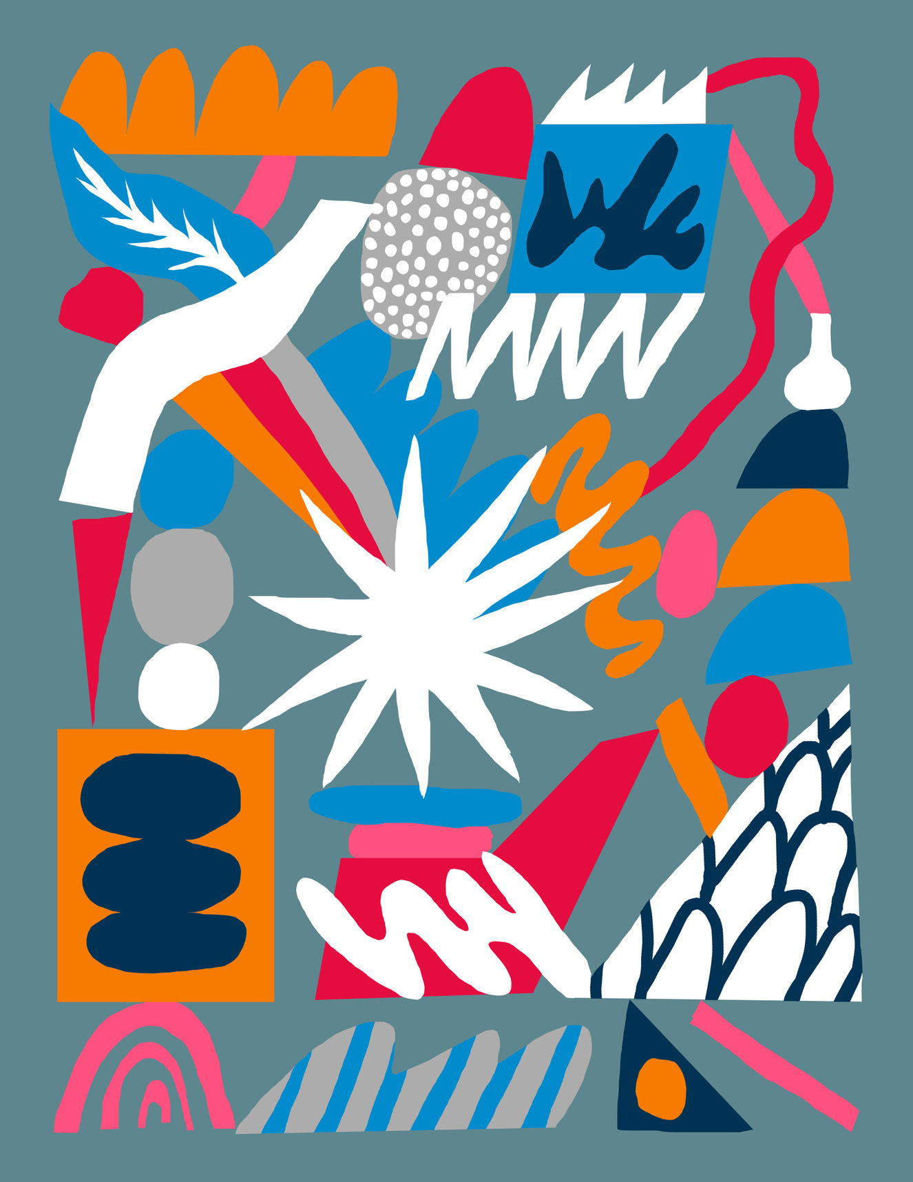 The contemporary abstraction wall mural is one of the best pieces of modern art ever made. Its bright colours and surreal shapes will give your walls life and movement. This mural looks excellent in studios, offices, and other creative places where creating new ideas and being inspired are essential.
