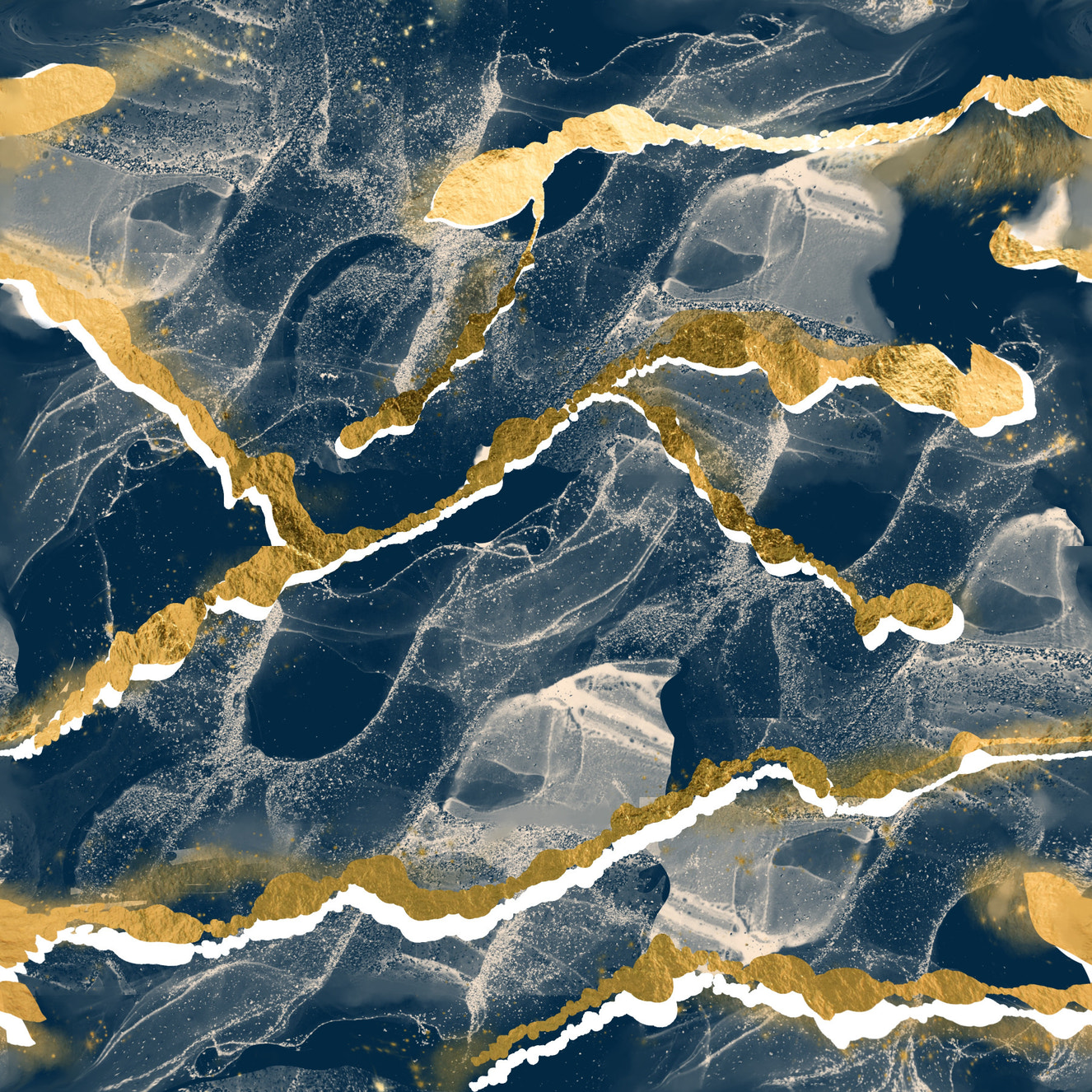 Golden Veins Navy Marble - Modern Luxe Abstract