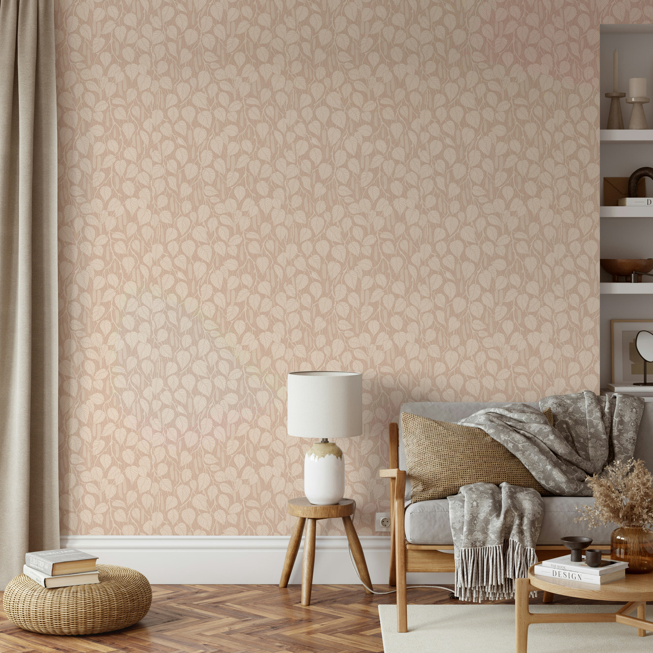 The beige floral wallpaper is a favorite for revamping a space with romantic flair. Whimsical flowers and radiant blooms evoke timeless elegance, bringing the beauty of the outdoors inside to transform your room into a beautiful haven.