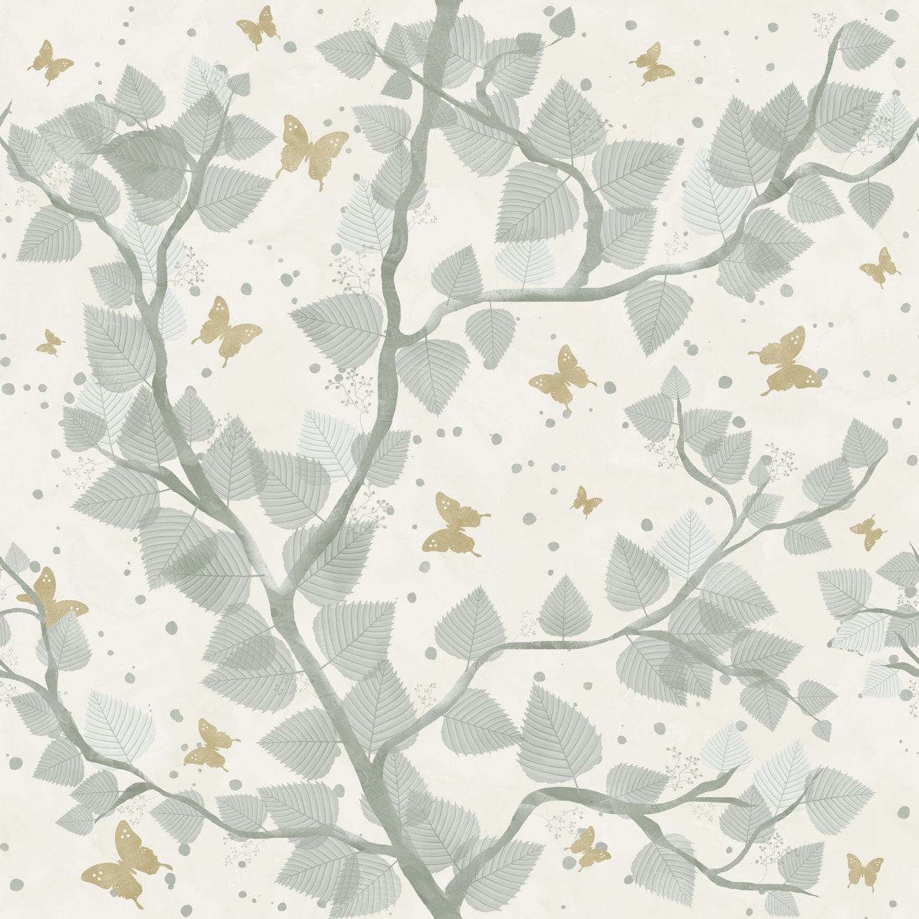 Birds and Butterflies Branch Olive Green