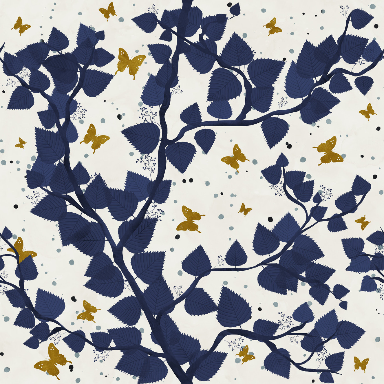 Gold and Deep Blue Butterflies Tree