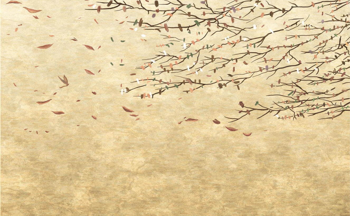 Gold colour with cherry blossoms tree wallpaper makes you feel rich and stylish. These deep golden colours give your walls a touch of luxury, making them look big and classy.