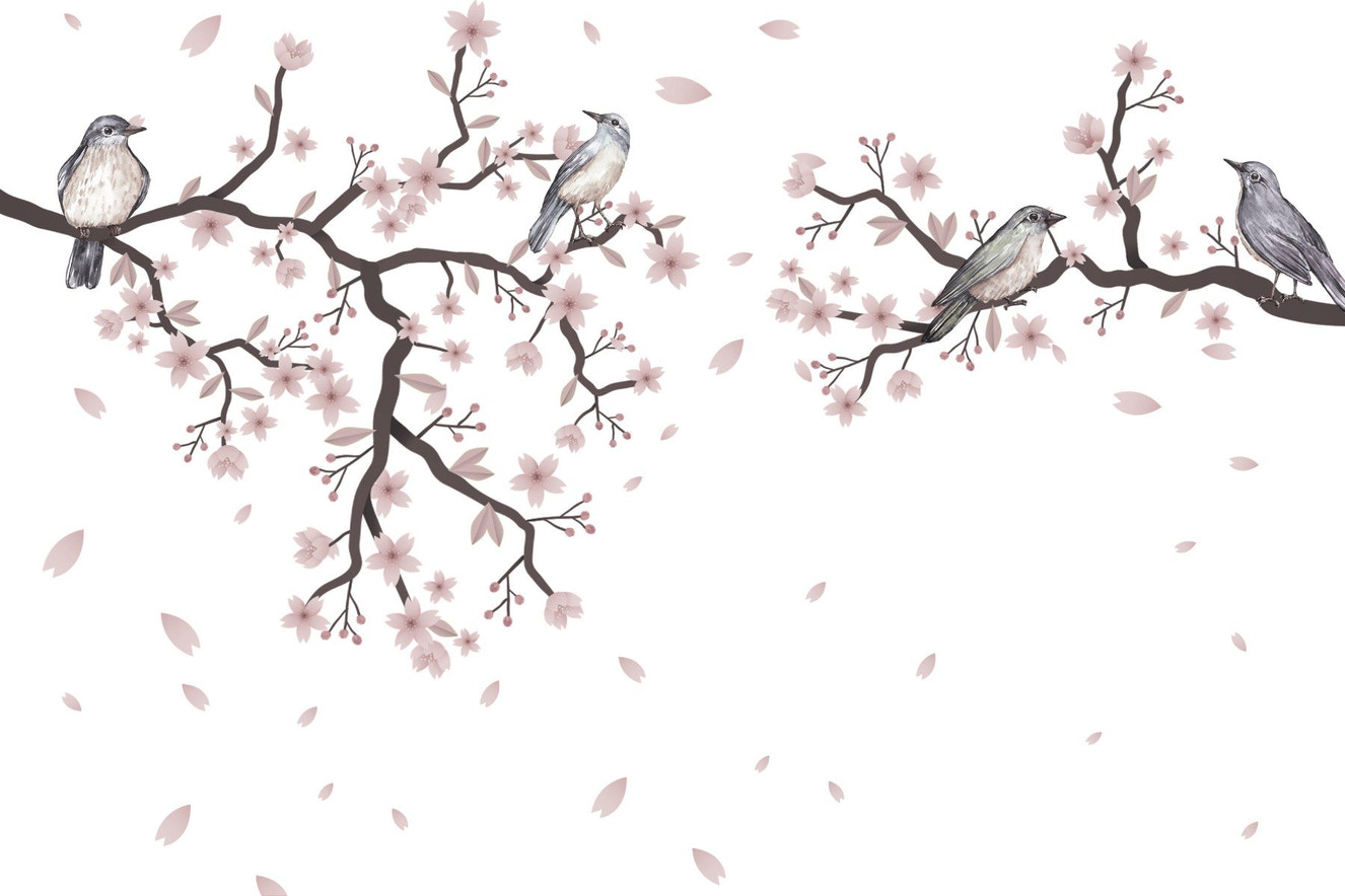 Newer styles of cherry blossom patterns can be found in panel murals. The segmented panels in these murals give them a modern, artistic look that can improve the look of any room. The panels show off the blossoms, making the space look bigger and more open. They are arranged to show the flowers' beauty.