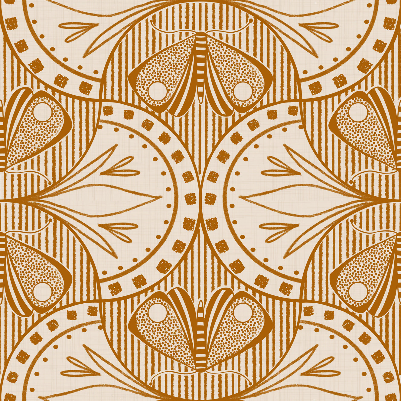 Art Nouveau Butterfly Floral in Cream Burnt Orange