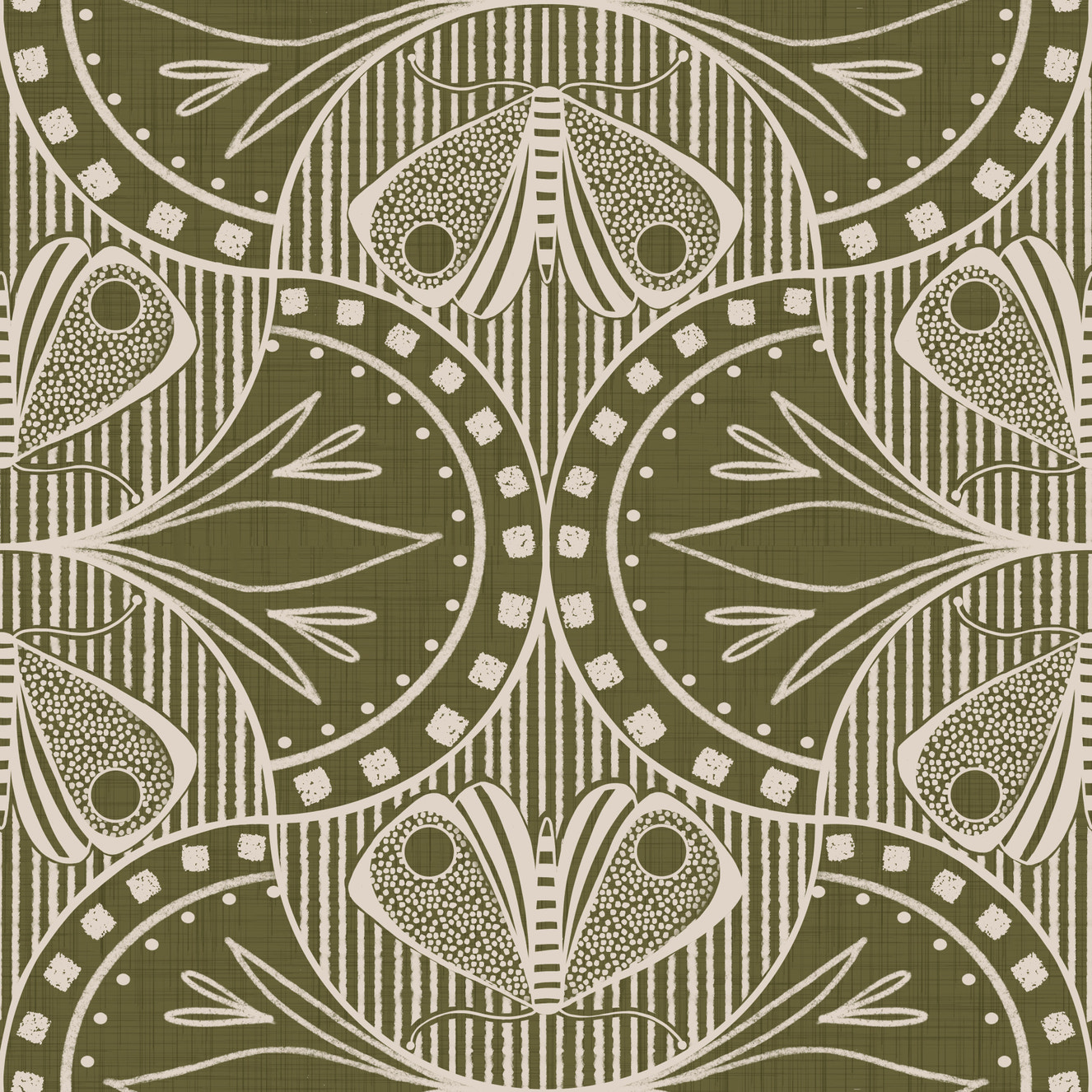 Art Nouveau Butterfly Floral in Olive Drab