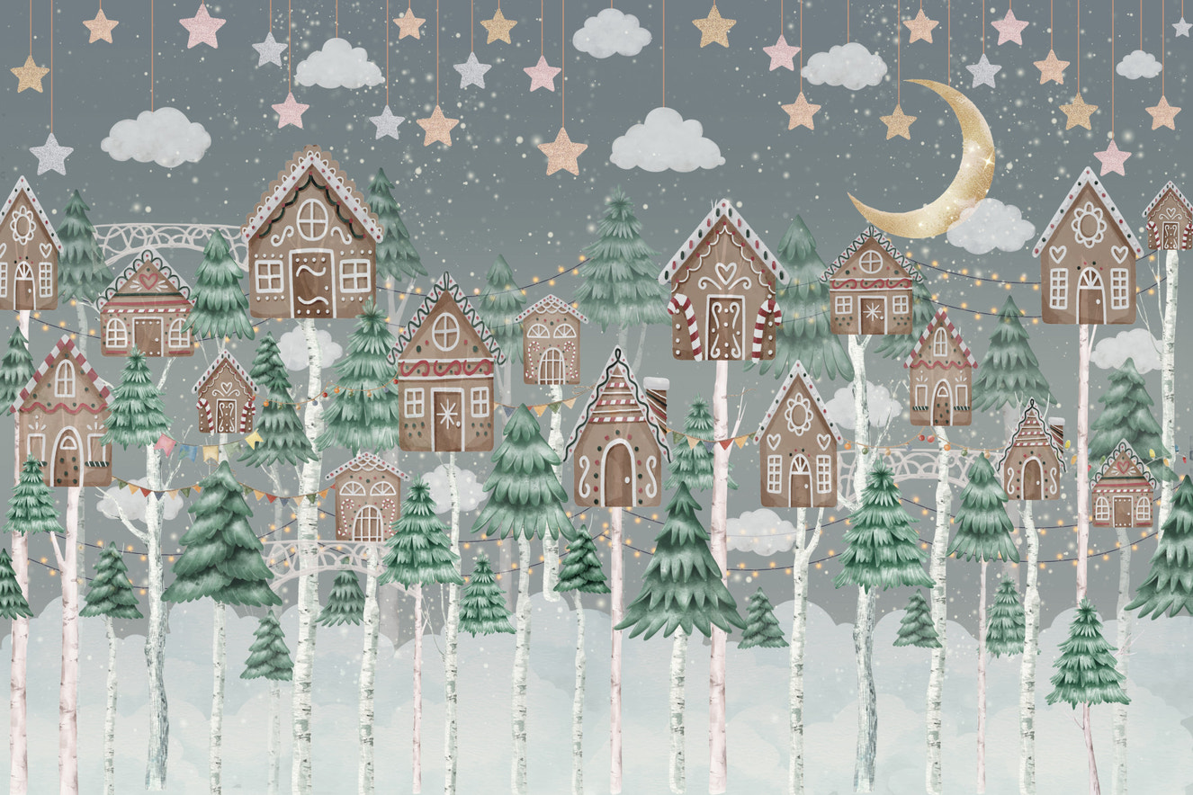 Night sky serenade wallpaper makes any room feel magical with its moon, clear blue skies, and stars. It makes beds and other quiet places feel calm at night and goes well with modern and traditional decor.