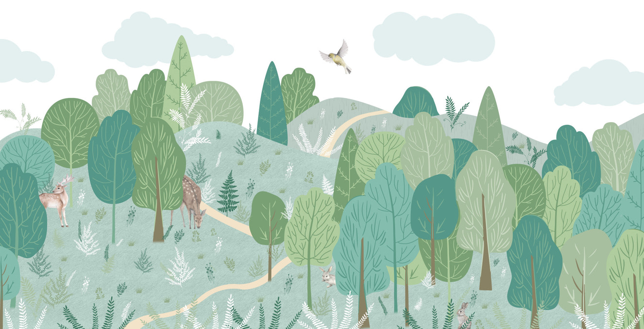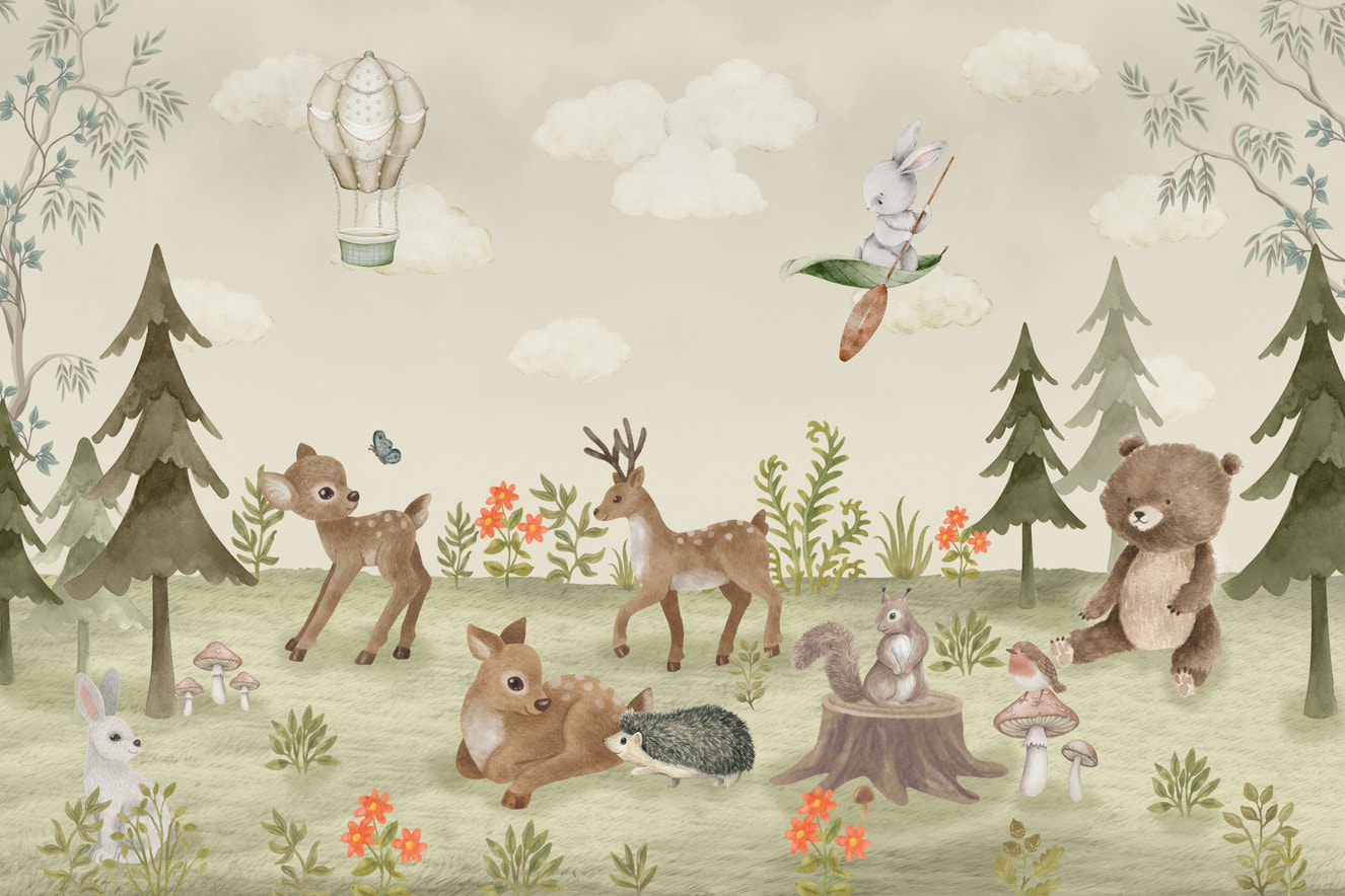 Woodland Friends wallpaper is a cute and fun addition to a child's room. This design has cute deer and other animals that live in the woods, making it feel warm and friendly. It's perfect for making kids love nature and animals while also giving them a warm and cosy place to be.