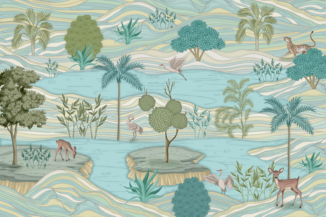 Birds and Deer Nature Wallpaper shows both the beauty and freedom of deer and birds. Many of these wallpapers show peaceful scenes of deer grazing while birds fly around them, catching the beauty of nature. This pattern makes you feel calm and connected to nature, and it can be used in both living area and beds.