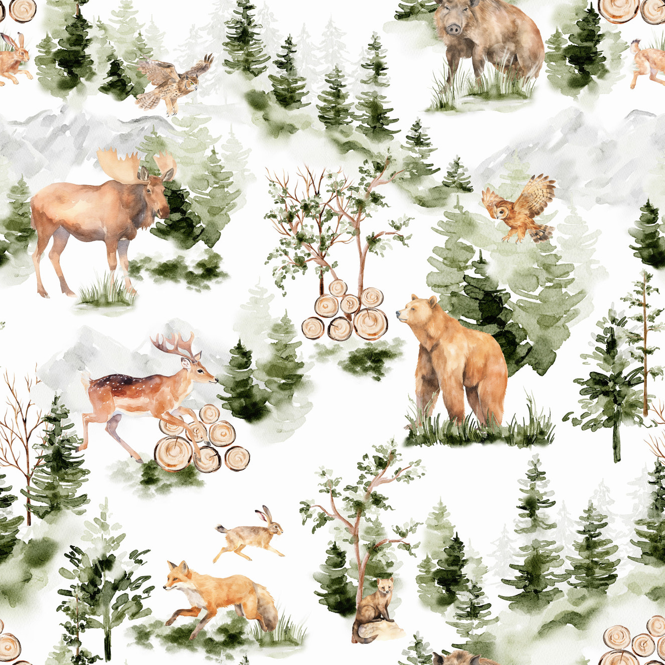 Woodland Animal Pattern Wallpaper is great for people who like patterns with lots of small details. In addition to deer, these images show foxes, squirrels, owls, and other animals that live in the woods. They are great for feature walls because the designs are very detailed and give any room depth and interest.