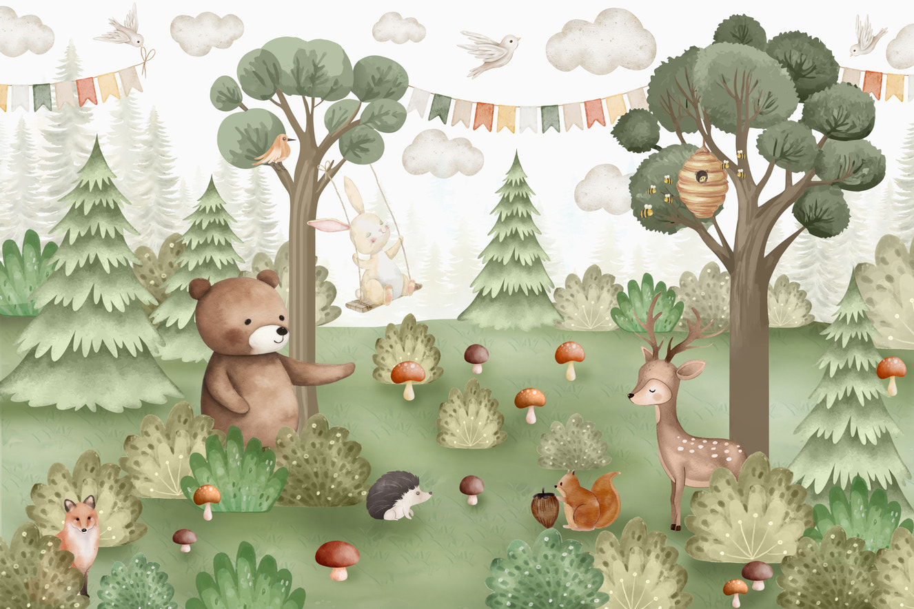 Woodland Friends wallpaper is a cute and fun addition to a child's room. This design has cute deer and other animals that live in the woods, making it feel warm and friendly. It's perfect for making kids love nature and animals while also giving them a warm and cosy place to be.