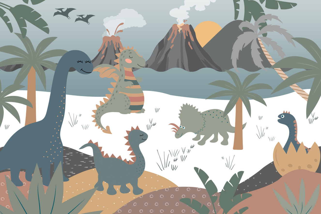 Cartoon dinosaur wallpaper is great for making a fun and colourful space, like in a child's room or play area. The friendly, over-the-top faces of these dinosaurs make the room feel fun and open, and they also give it an air of adventure.