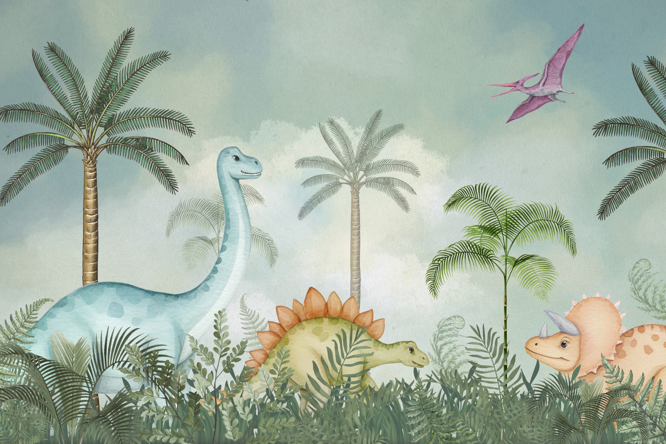 A dinosaur kids wall mural has bright colours and detailed pictures of dinosaurs that will get bigger kids excited and creative. It's a great choice for kids who are interested in dinosaurs because it turns their room into an exciting setting.