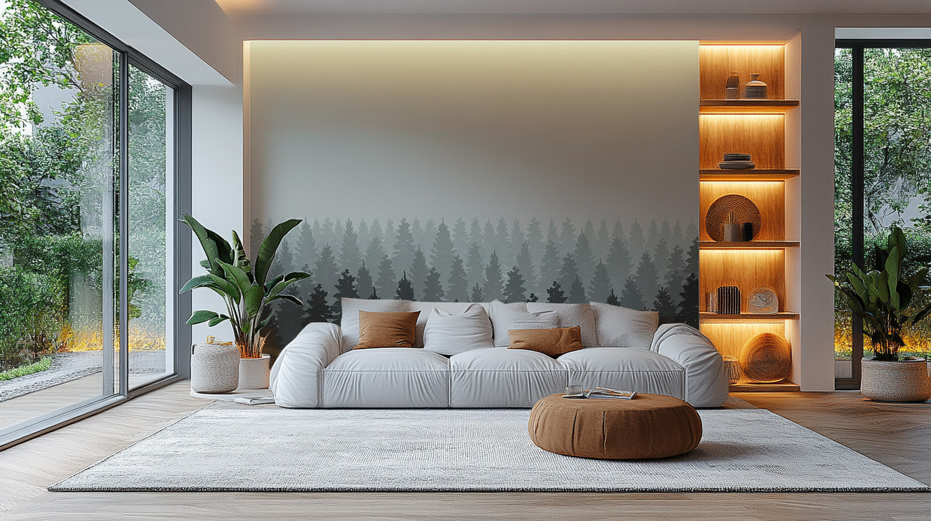 When choosing a tree wallpaper, take into account the size and natural light in your room. For small or dark rooms, designs with light backgrounds or slender trees like birches can create a sense of space and height. For a large wall, a dense and detailed forest mural can give a luxurious and enchanting feel.