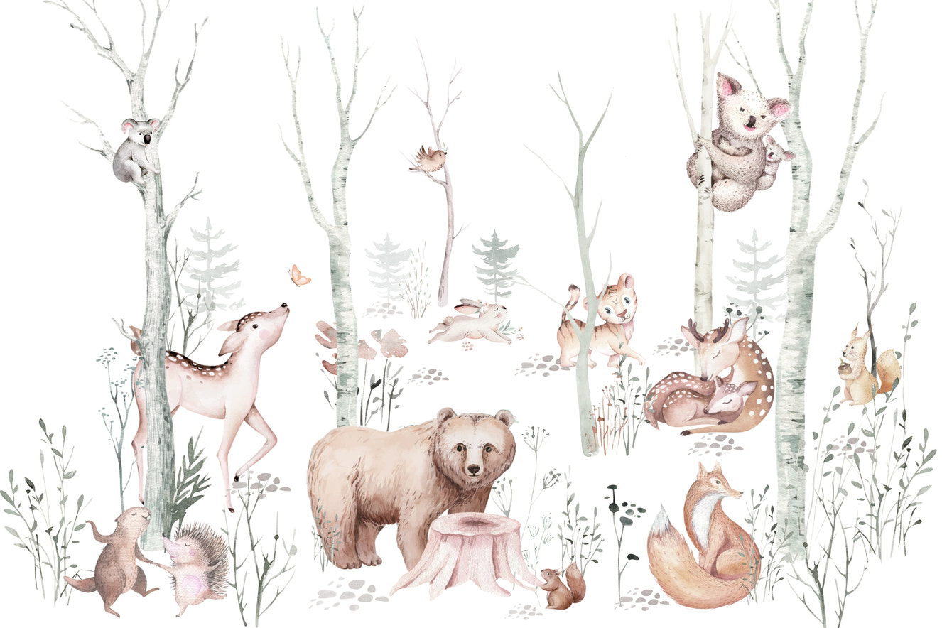 These two are similar, but there is a big difference. Forest graffiti is usually a large, non-repeating image that covers an entire wall, such as a photo of a typical forest scene. In contrast, forest themed wallpaper usually features a repetitive pattern of elements such as trees, leaves or wildlife.
