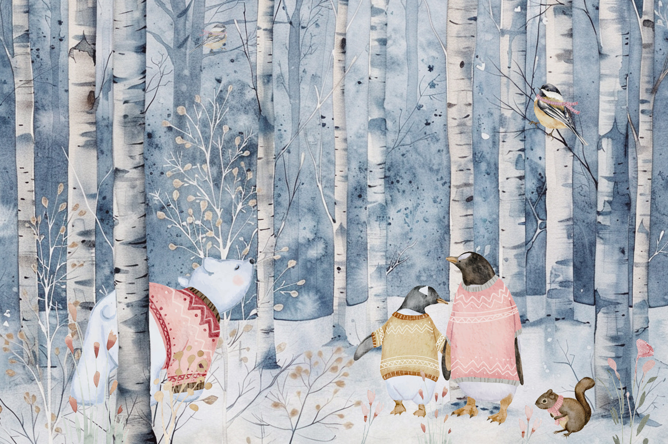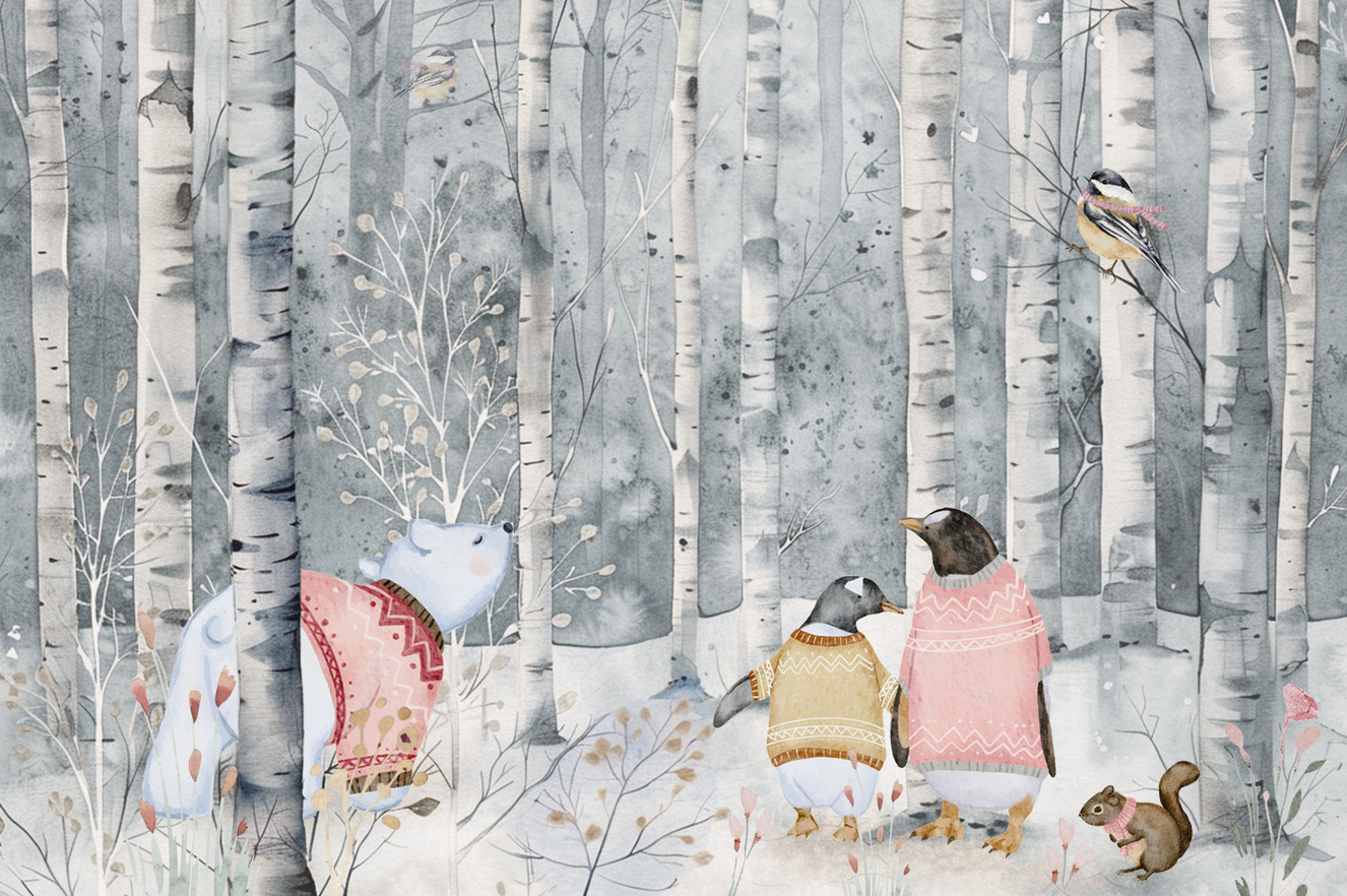 The frozen forest theme is a foggy wonderland everyone would love to have in their playroom. Your kids will love to see polar bears, reindeer, and polar koalas during their playtime. This trendy, foggy forest background has a lighter hue and precise detailing that makes us feel this snowy forest is present in real life.