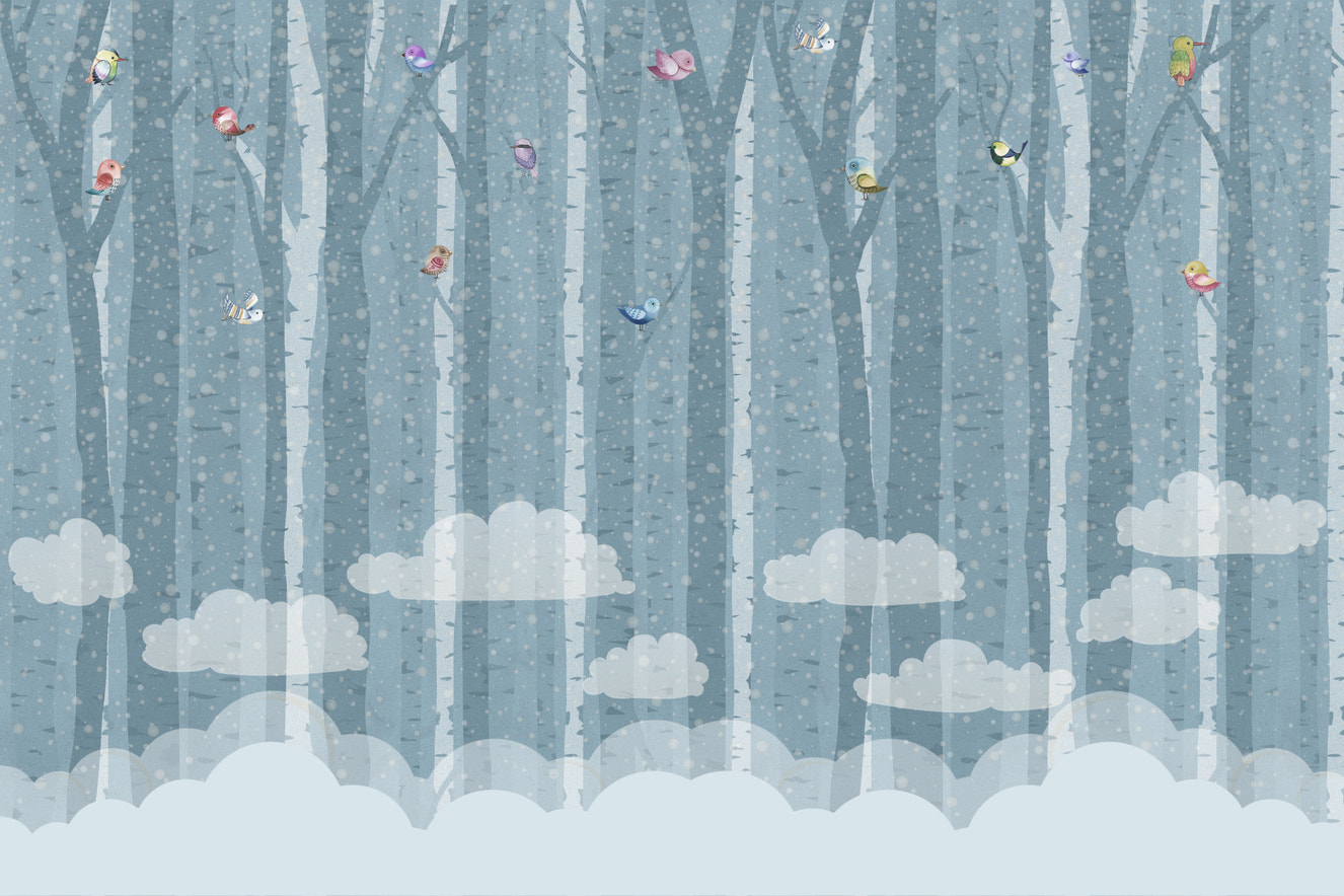 Birch & Birds in Blue