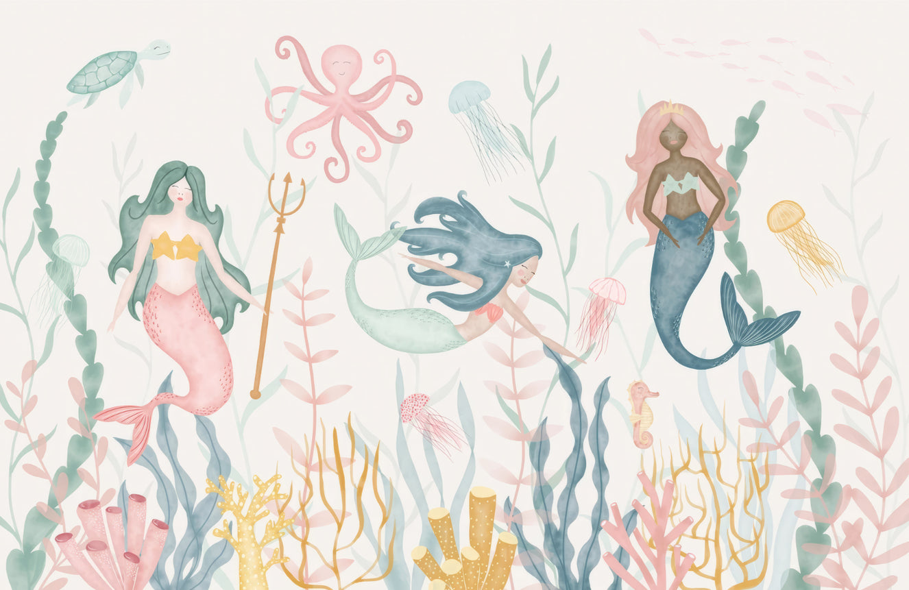 When you put up mermaid wallpaper, the beauty of the ocean comes inside. Kids love the waves, shells, and friendly fairies that make them a fun and exciting place to be.
