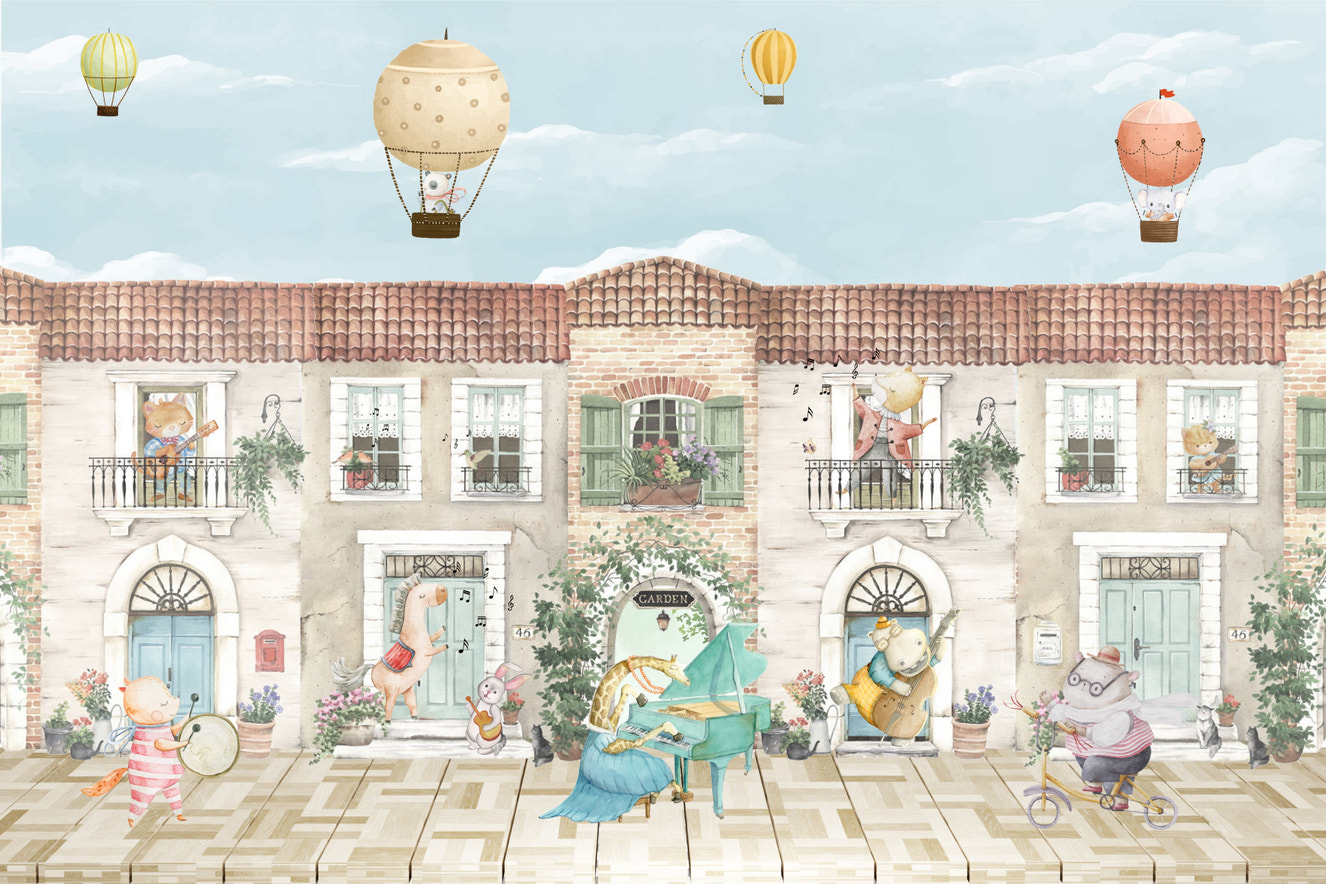 A hot air balloon mural wallpaper with many colours makes any room look bright and happy. With its brightly coloured balloons, it adds energy and life to the room, making it an excellent choice for creating a fun, lively space that encourages creativity.