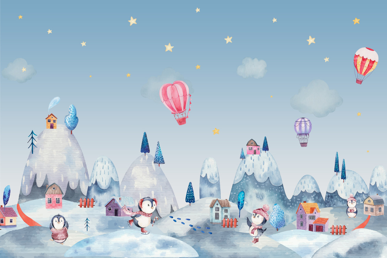 Abstract mountain and air balloon murals add a modern touch by combining geometric shapes with fun balloon patterns. These murals bring art and creativity into any room by combining modern style with fun themes.