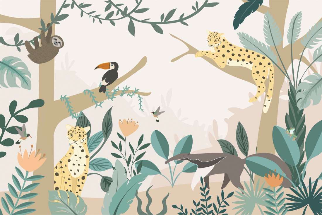 Well, there are many! But an animal jungle safari is the most trending wallpaper for kids and spaces related to them.