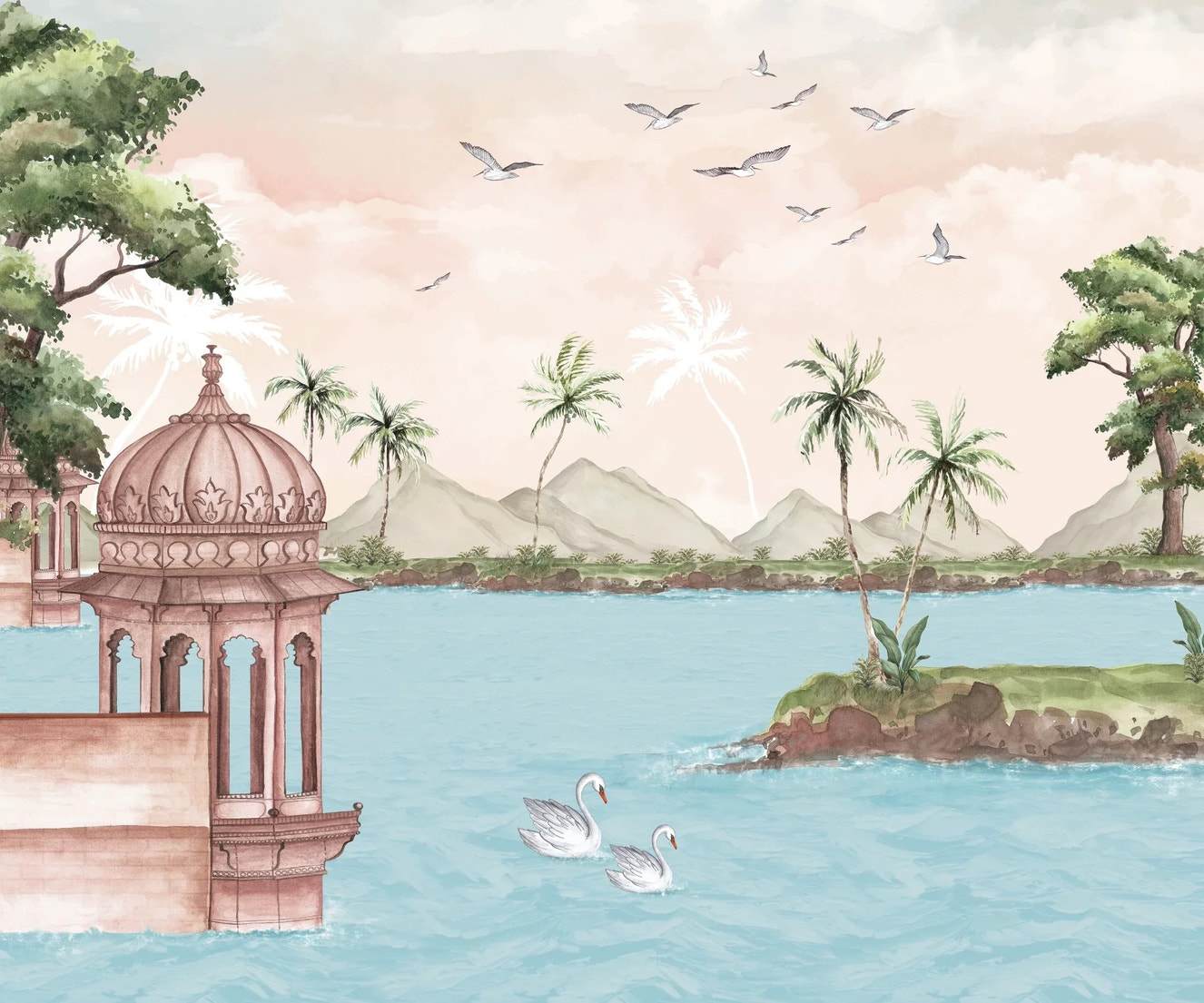 Pond wallpaper and lagoon wallpaper often evoke feelings of stillness and deep tranquility. These serene, sheltered water scenes are excellent for creating a calming and composed atmosphere in bedrooms or offices.