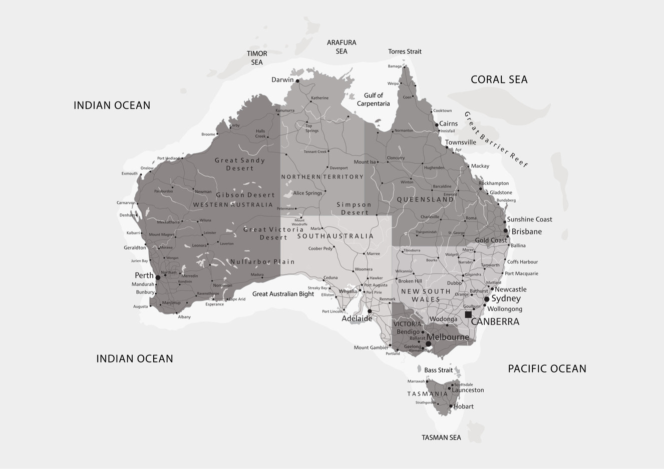 Down Under Map - Grayscale