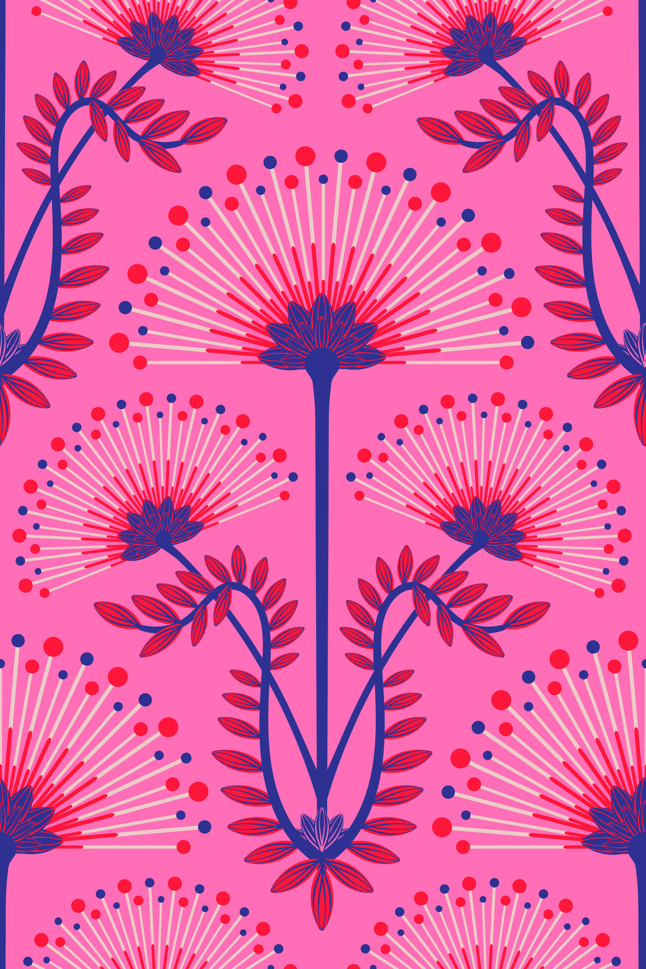 Modern Retro Flower Pattern Wallpaper