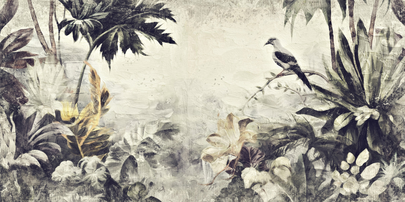 Monochrome vintage jungle mural designs make you feel nostalgic with their classic patterns and fine details. Add a bit of classic elegance to any room with these murals. They give the room history and personality.