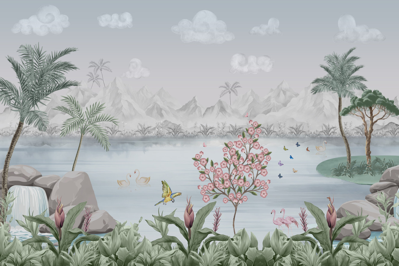 Pink-coloured mountain background wallpapers can give a room a soft, playful feel. Blending nature with a soft touch of colour, the soft colours create a dreamy atmosphere that's great for nurseries or creative areas.