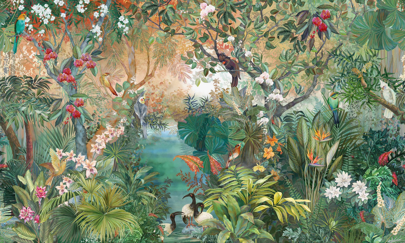 Natural tropical forest wallpaper murals will give your home a bright and foreign feel. Tropical wallpapers with lots of lush greenery and colourful patterns are great for making living rooms livelier or making bedrooms feel like they're on vacation.