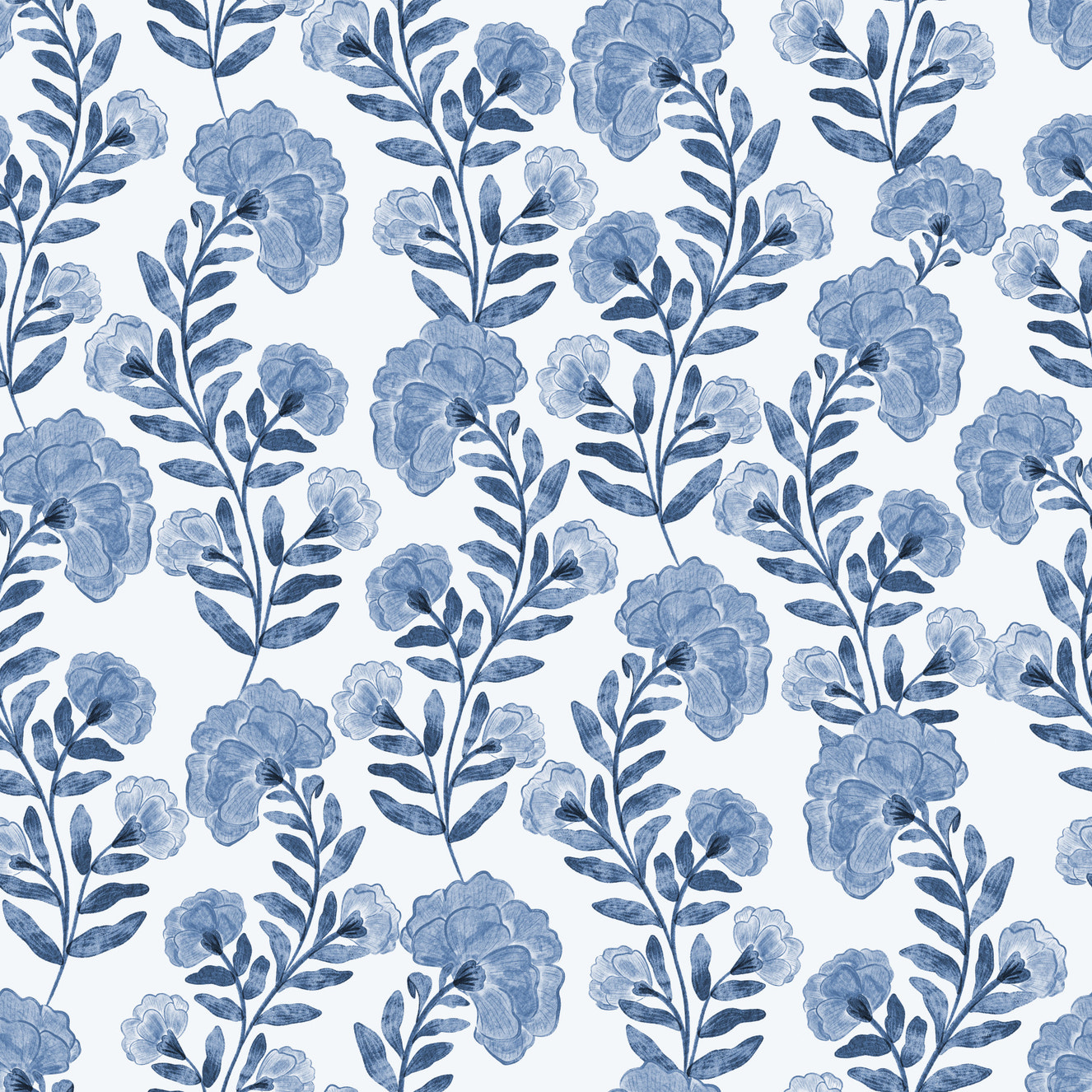 Blue is a standard colour in the Scandinavian style, often used to make people feel calm and peaceful. Scandi flower blue wallpaper has various shades. They range from light powder blues to dark navies. It's great for making any room feel calm.