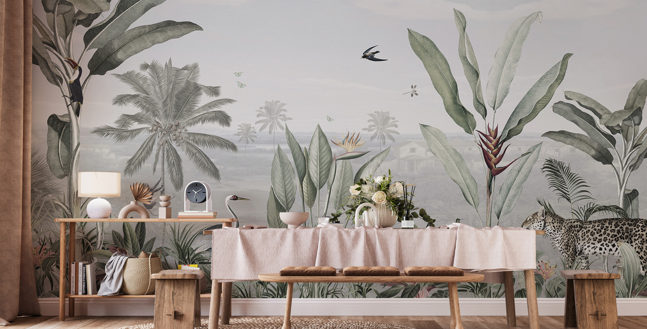 The collection features botanical murals, lush tropical patterns, and captivating landscapes. These designs evoke a sense of adventure and bring elements of nature, history, and art into your space.