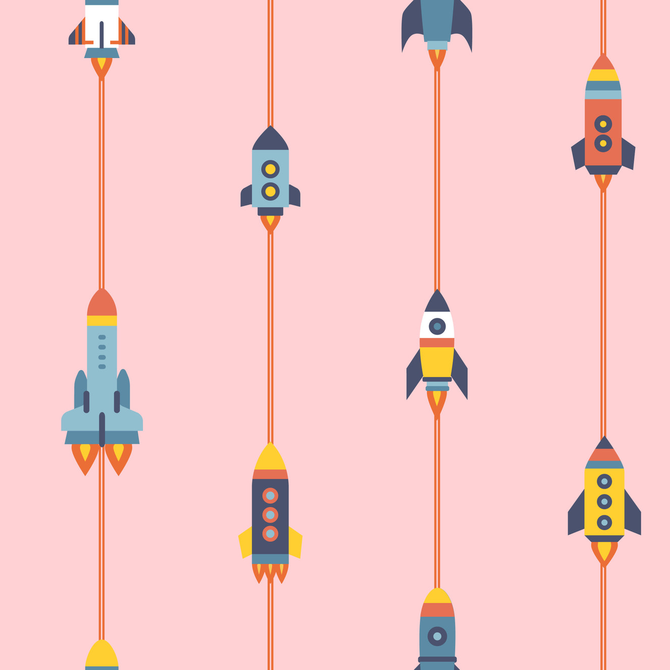 Mid-Century Modern Spaceships Rocket Space on Pink
