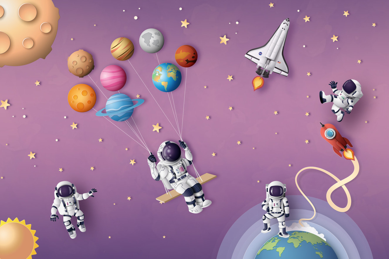 Celebrate the dance of the planets and moons with a solar system planet mural. This theme creates a captivating atmosphere, perfect for those fascinated by the complexity of our solar system.