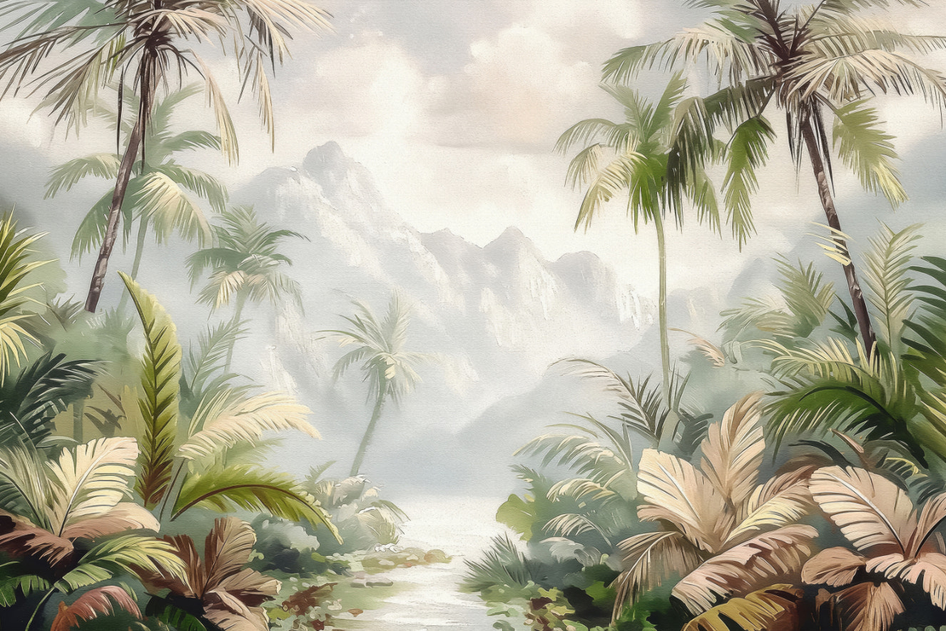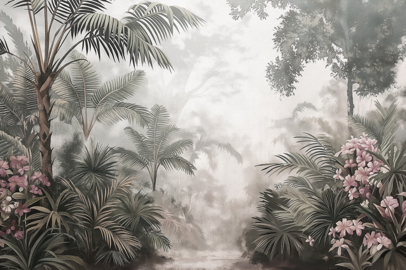 Trace the main style trends: from Nordic minimalism to tropical. The unique surface structure of the birch trees wallpaper is most appropriate for making a clear, minimalist background, which is frequently associated with a birch forest nursery. In contrast, opt for avant-garde tropical palm prints that will saturate your space with luxuriant and exotic atmospheres.