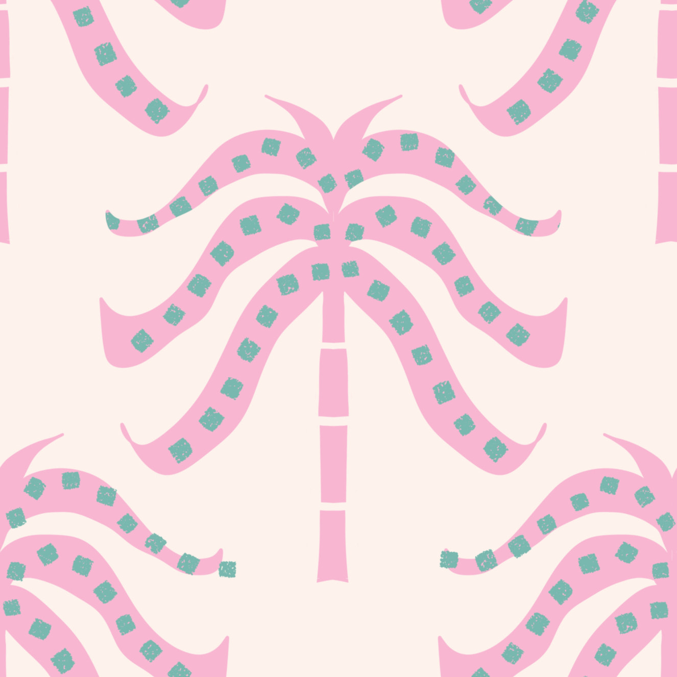 Tropical Palm Springs Flamingo Beige Aqua Green